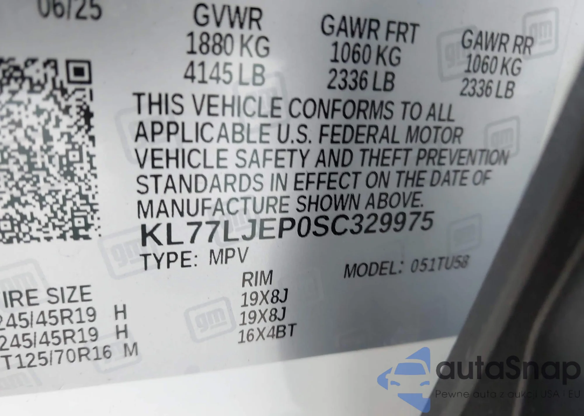LOT: 43407735 VIN: KL77LJEP0SC329975
