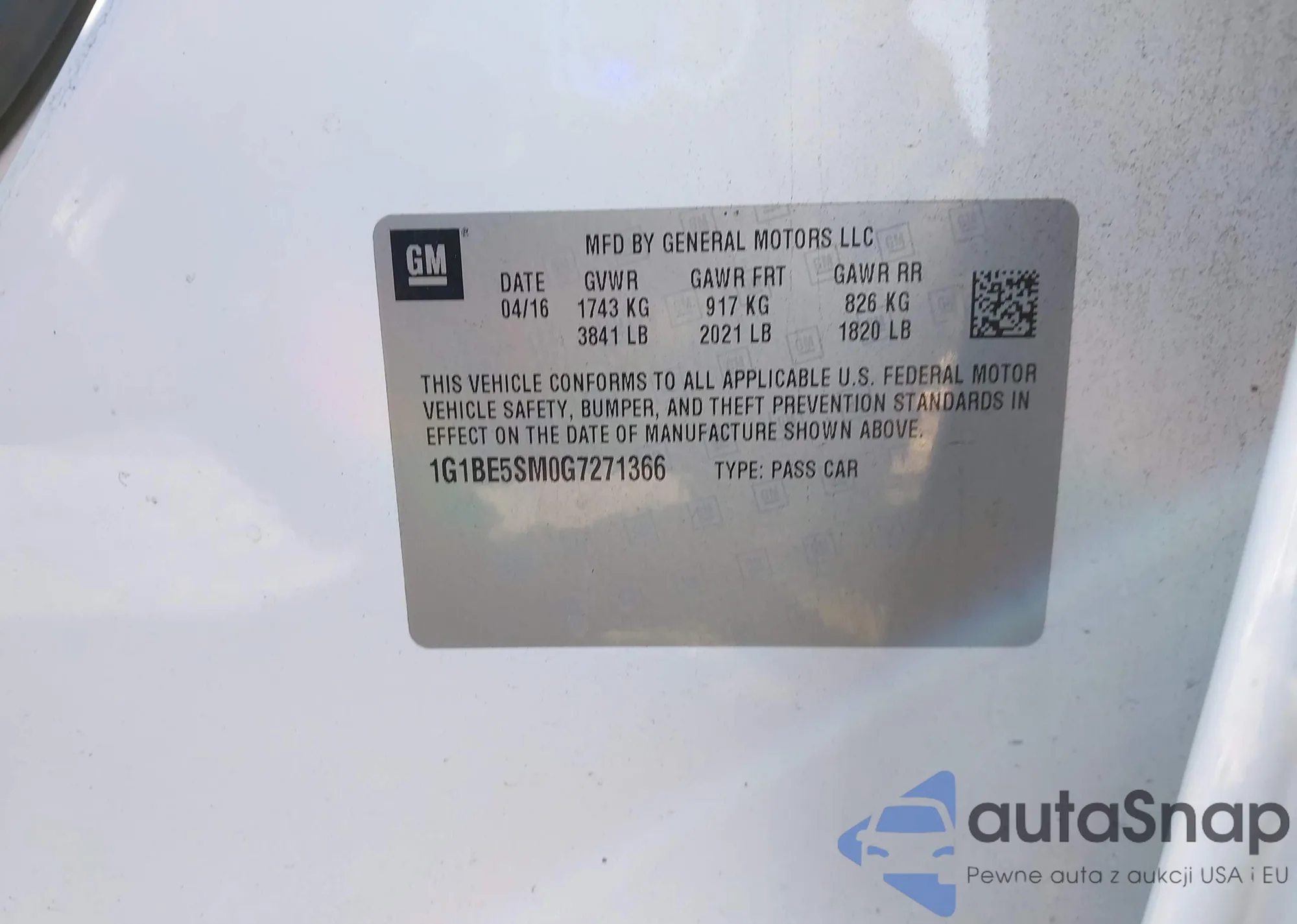 LOT: 43499671 VIN: 1G1BE5SM0G7271366