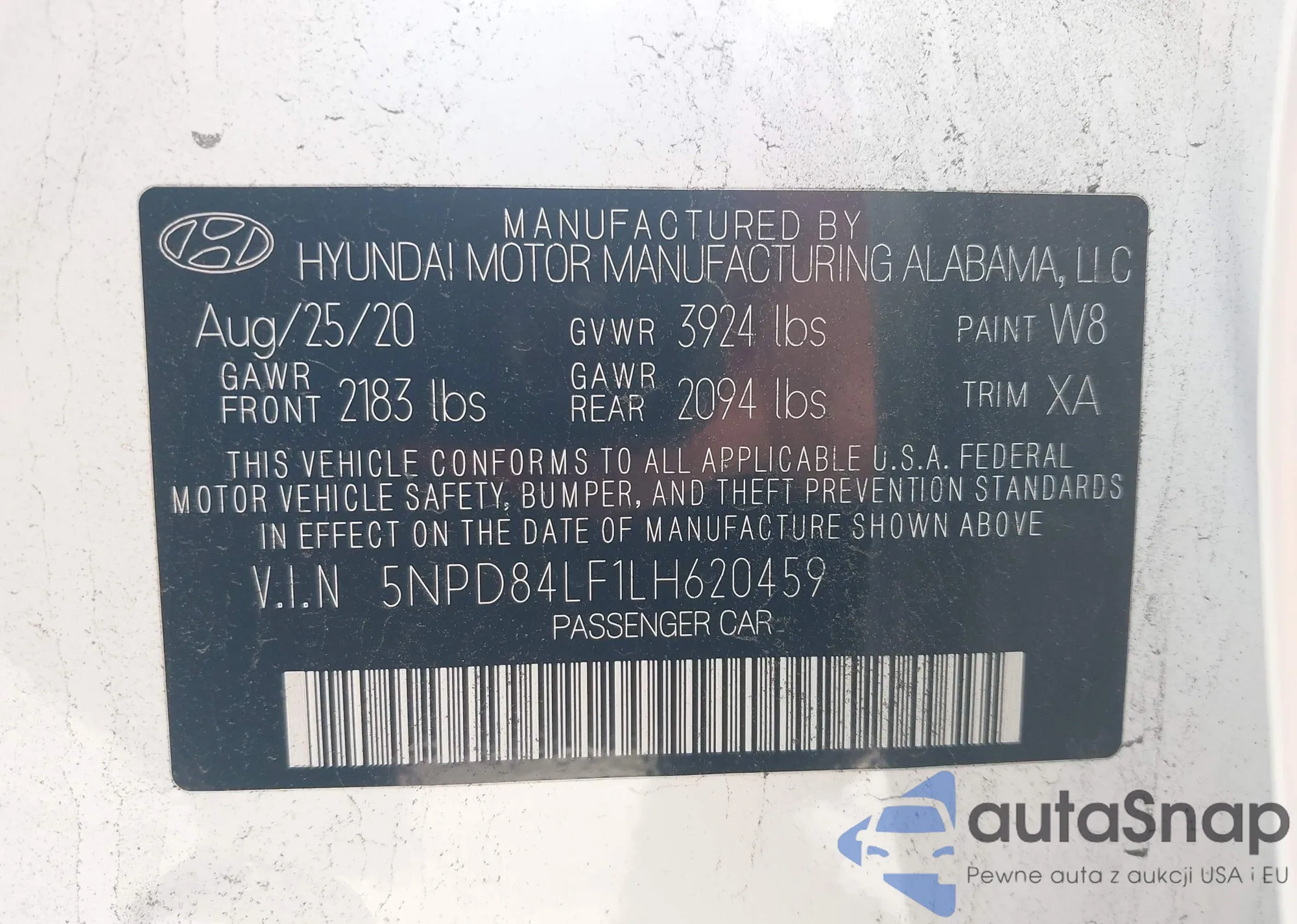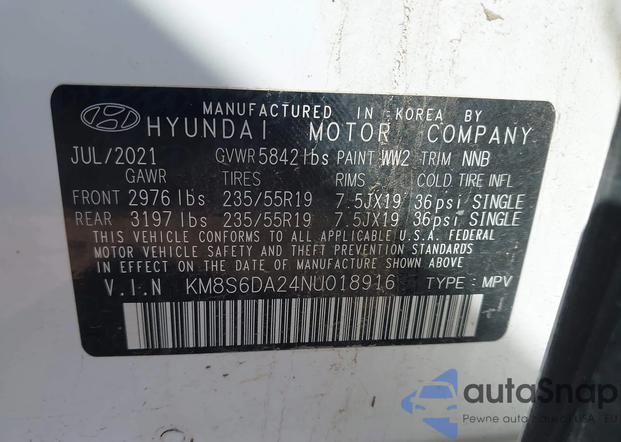 LOT: 43541779 VIN: KM8S6DA24NU018916