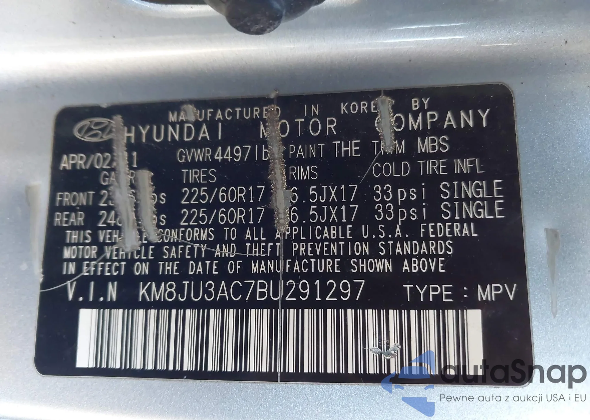 LOT: 43612460 VIN: KM8JU3AC7BU291297