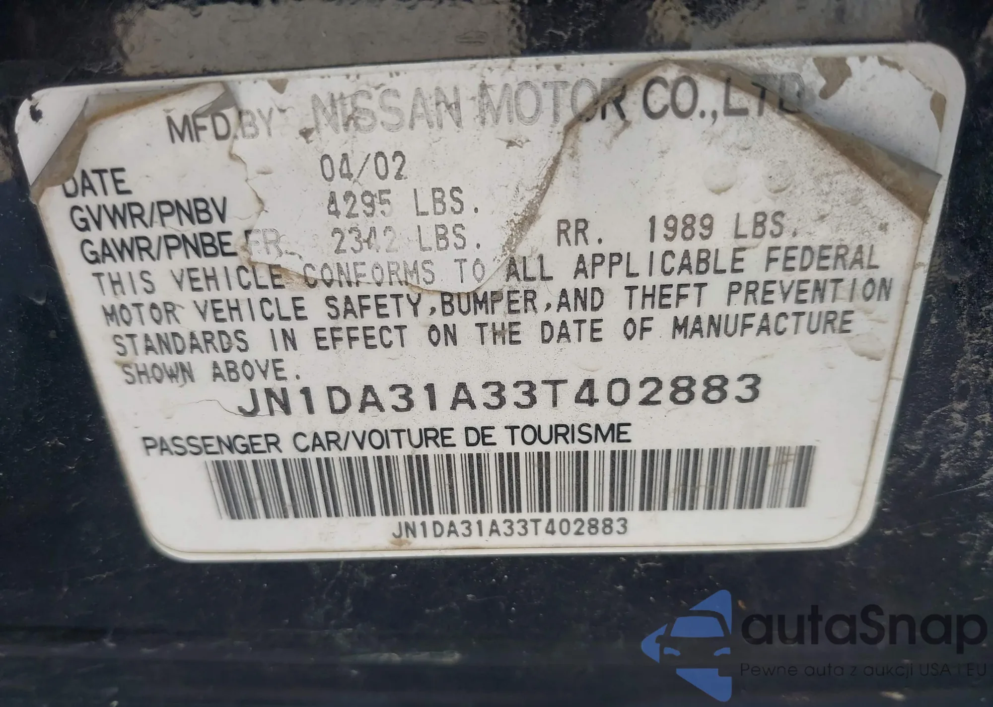 LOT: 40213028 VIN: JN1DA31A33T402883