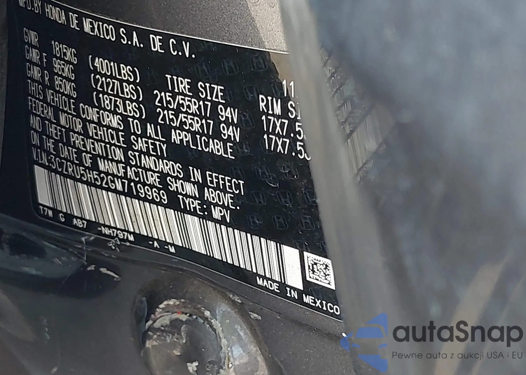 LOT: 43304038 VIN: 3CZRU5H52GM719969