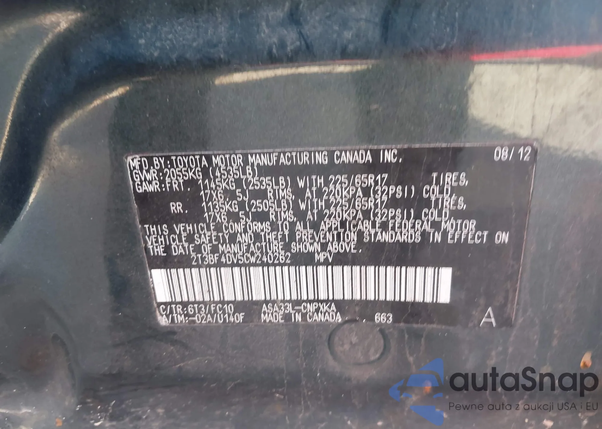 LOT: 43308249 VIN: 2T3BF4DV5CW240262