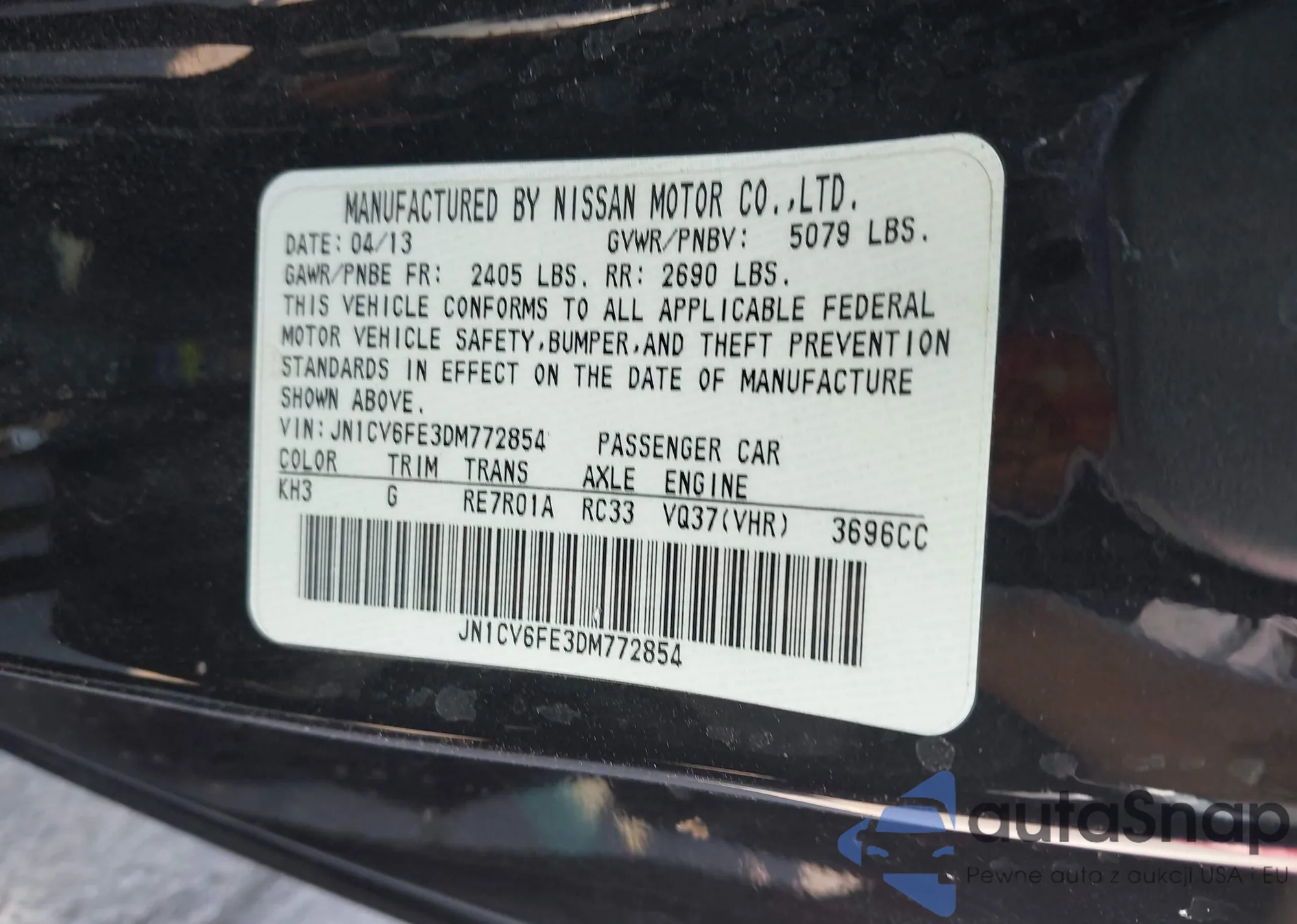 LOT: 43325786 VIN: JN1CV6FE3DM772854