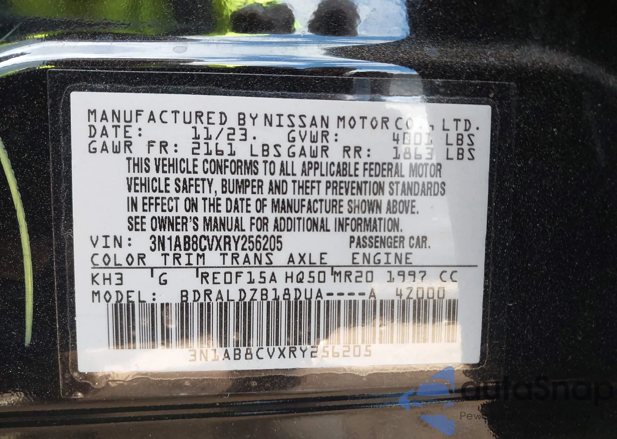• VIN 3N1AB8CVXRY256205