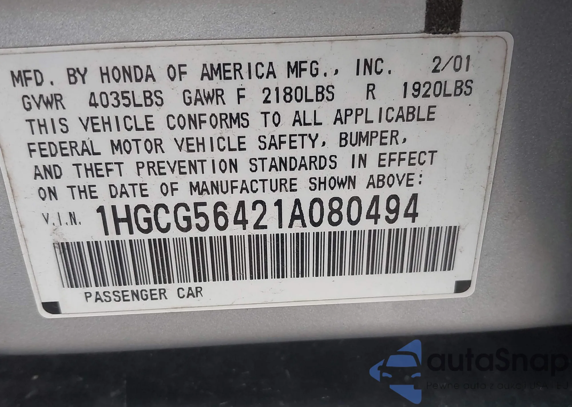 • VIN 1HGCV2F36MA021402