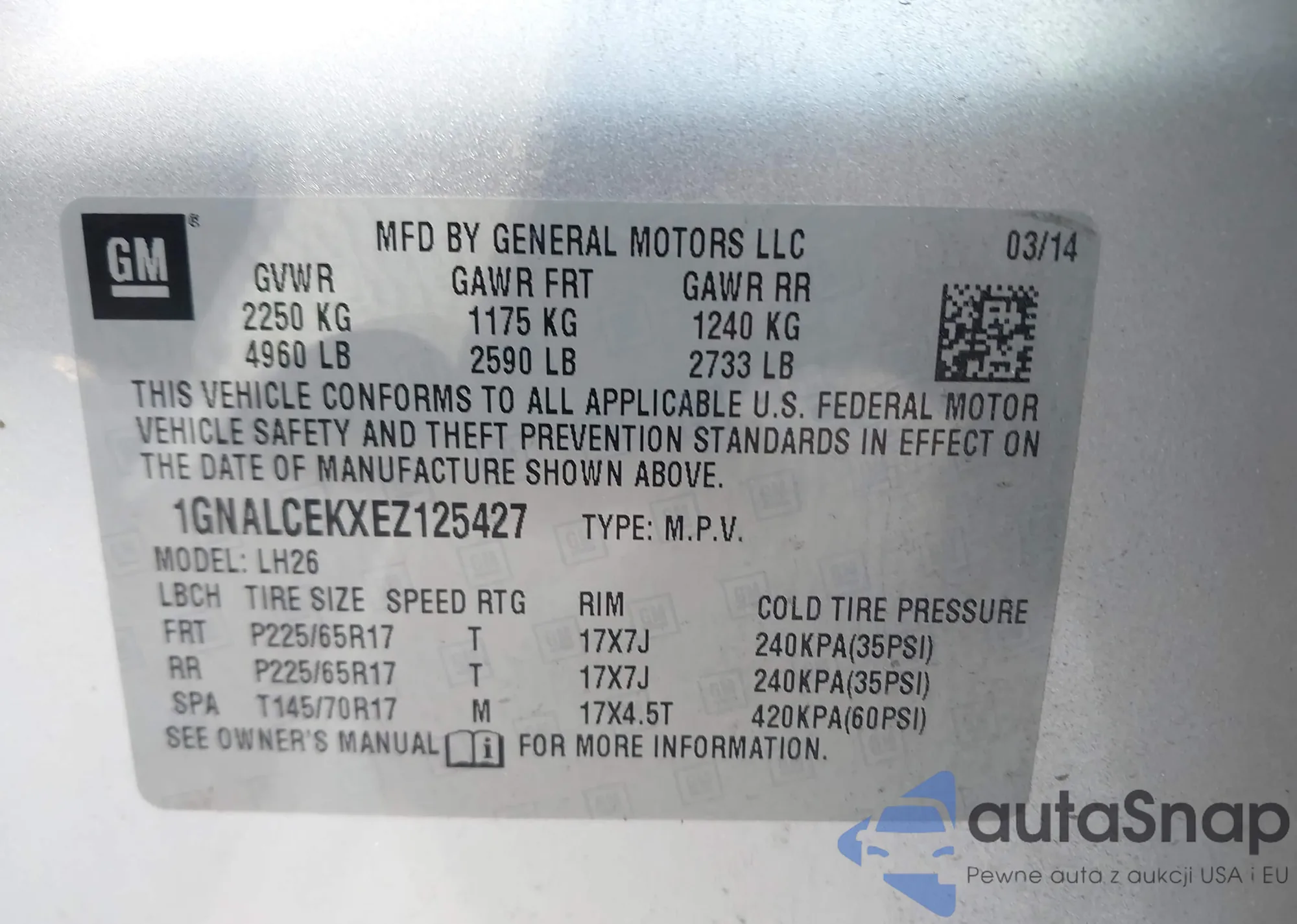 • VIN 3GYFNAEY5BS673730