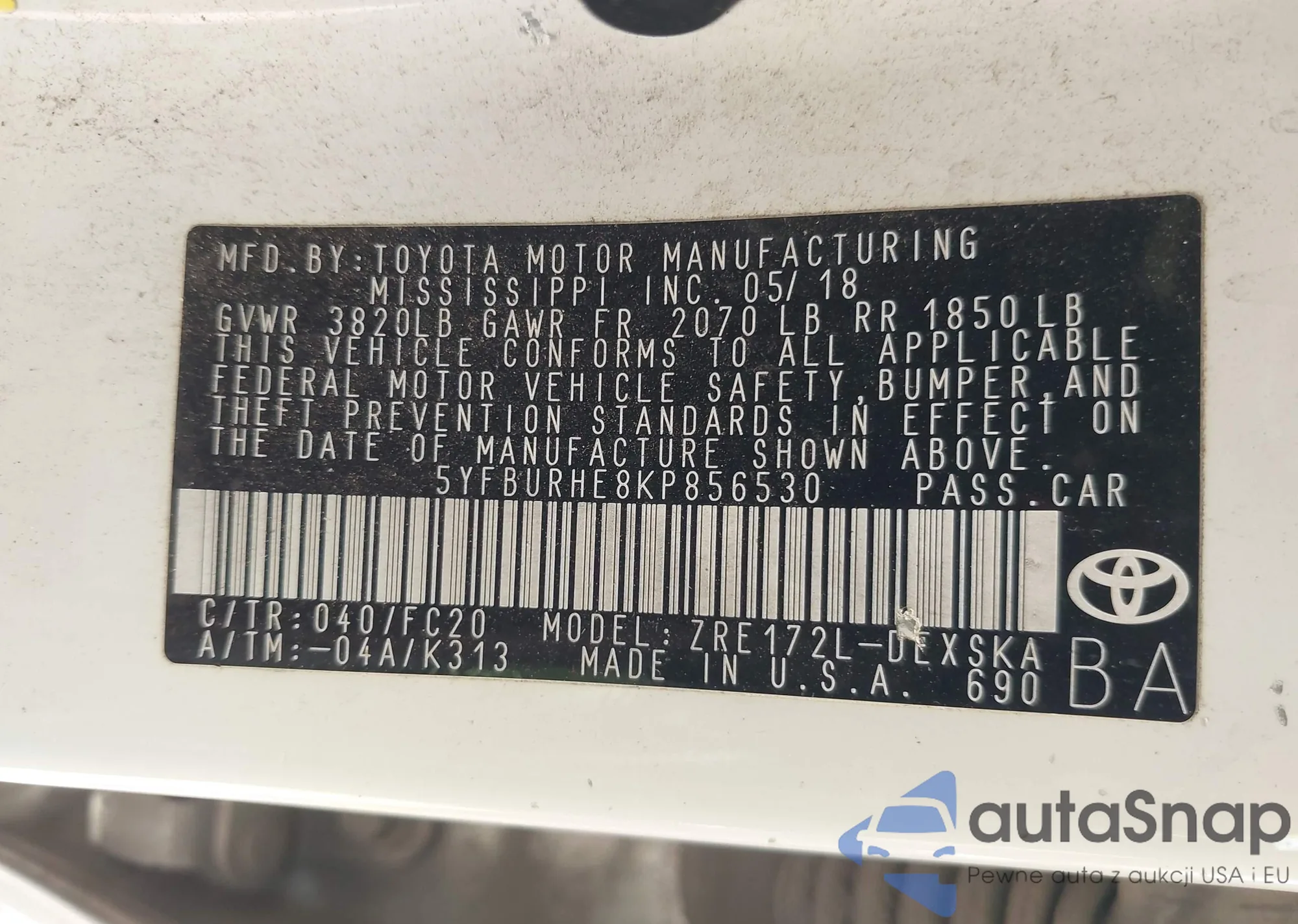 LOT: 43474177 VIN: 5YFBURHE9KP864703
