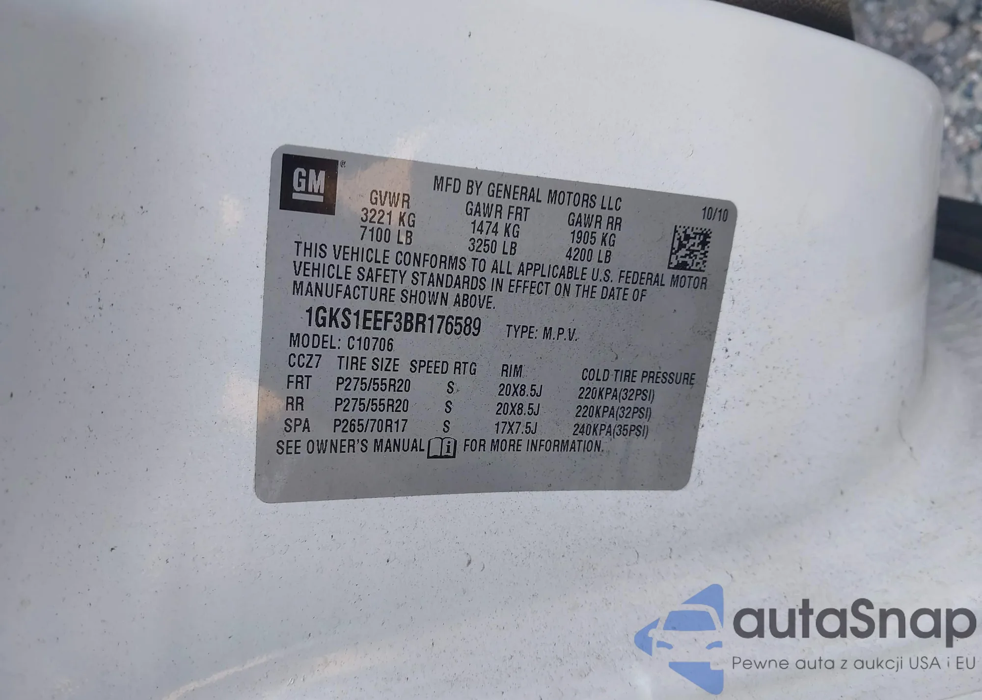LOT: 43146310 VIN: 1GKS1EEF3BR176589