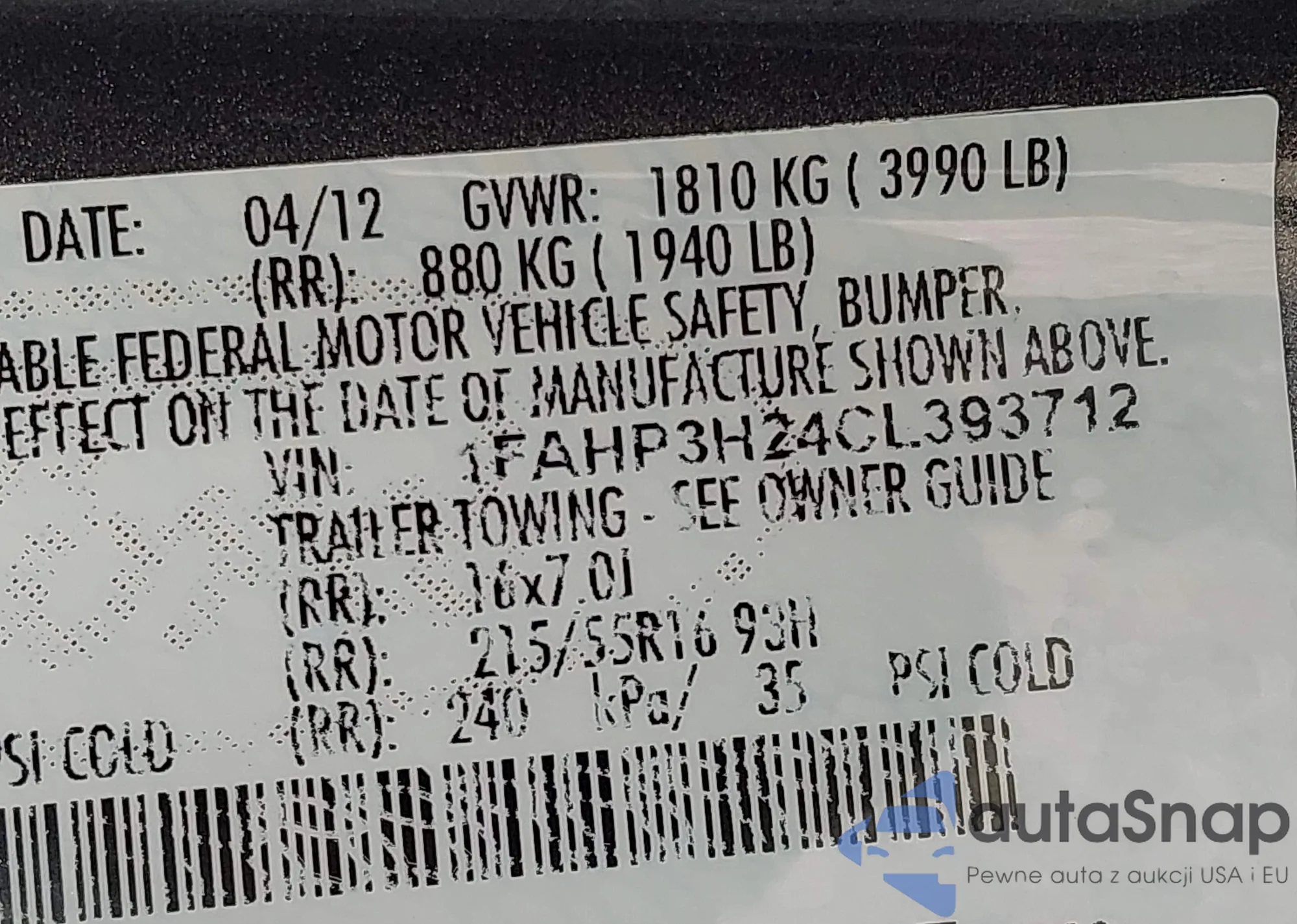 • VIN 1FAHP3H24CL393712