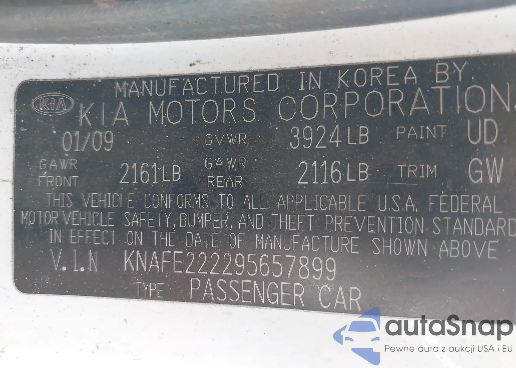 LOT: 43490777 VIN: KNAFE222295657899