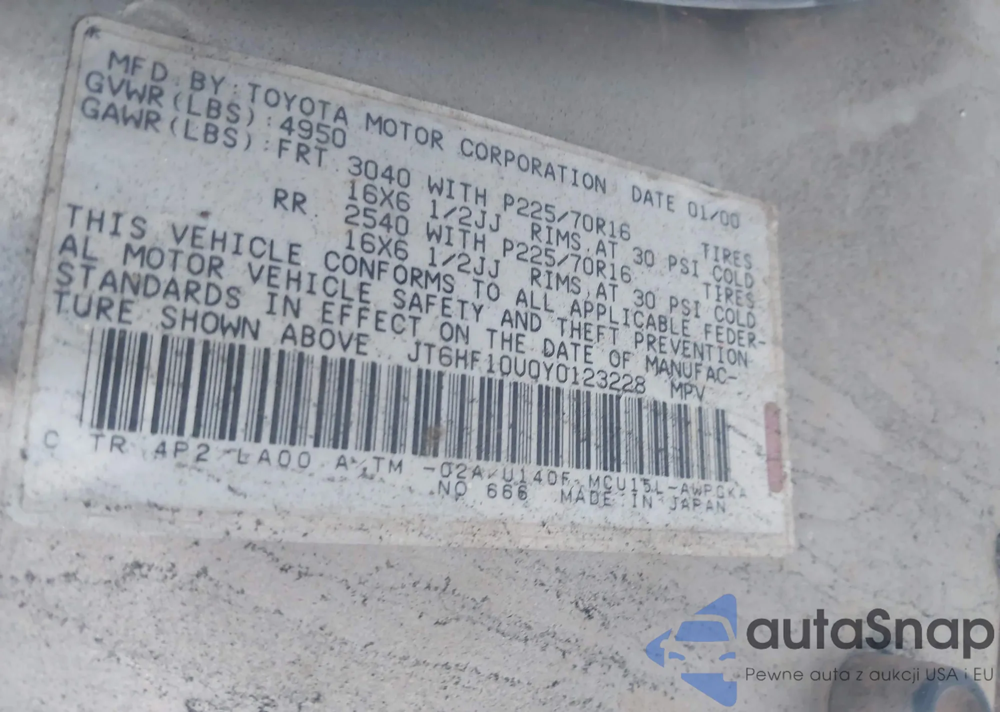 • VIN 5TFEZ5CN9GX018661