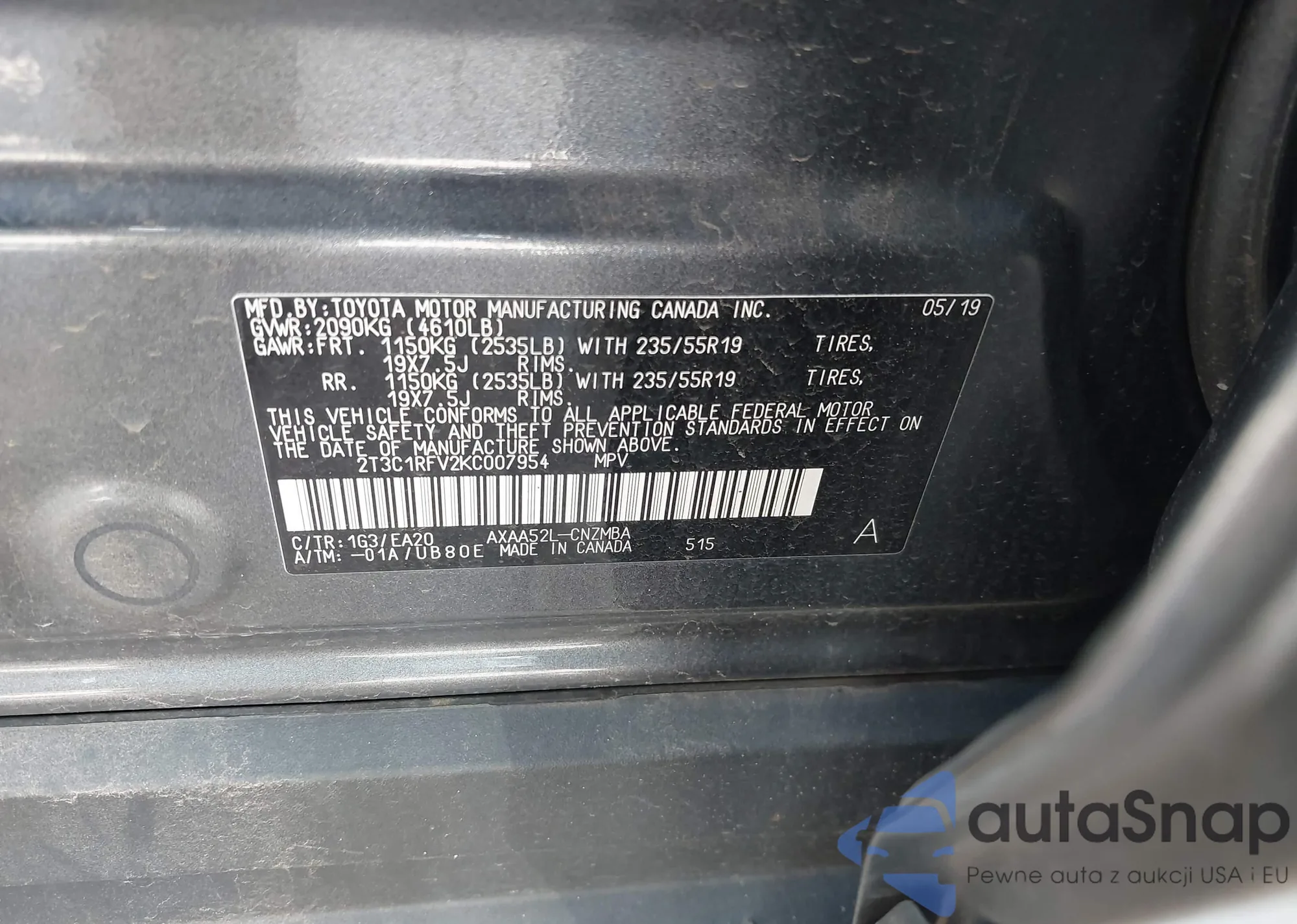 LOT: 43150685 VIN: JTMABABA5RA086844