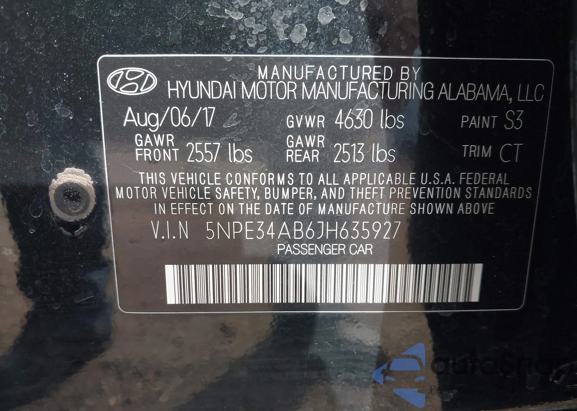 • VIN 5NPE34AB6JH635927