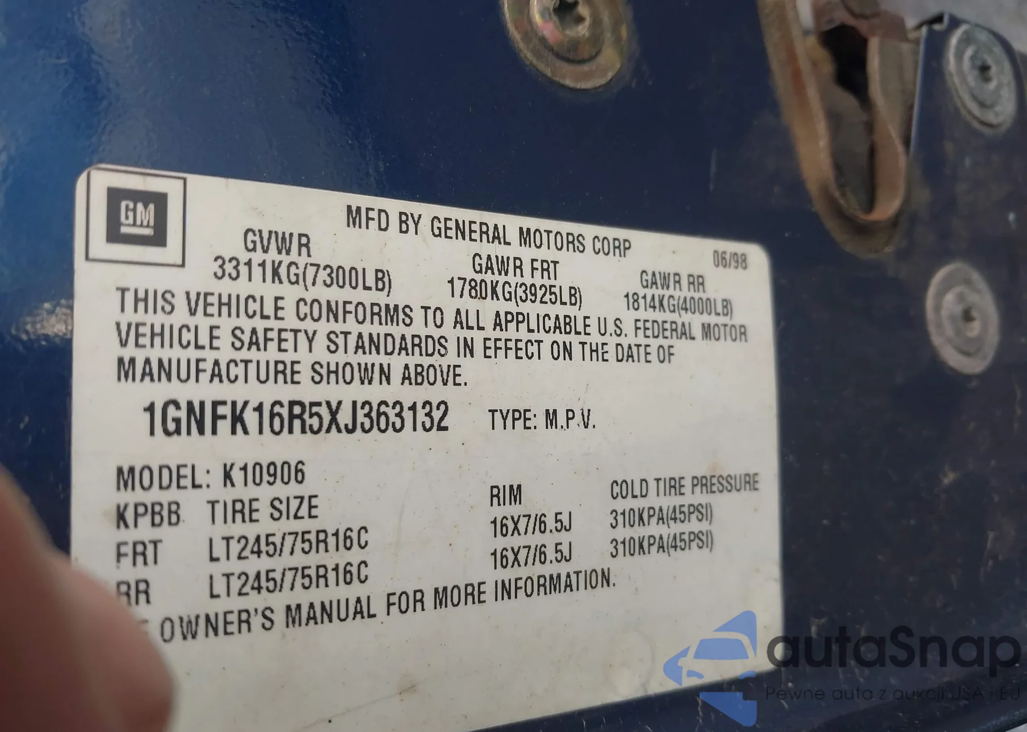 • VIN 1GNFK16R5XJ363132