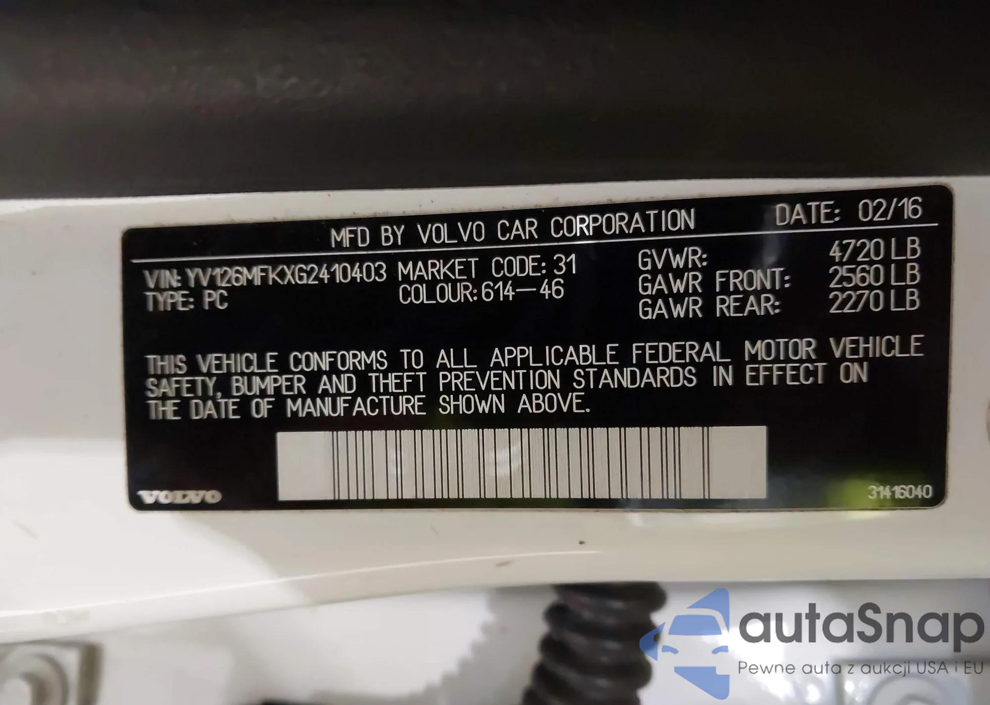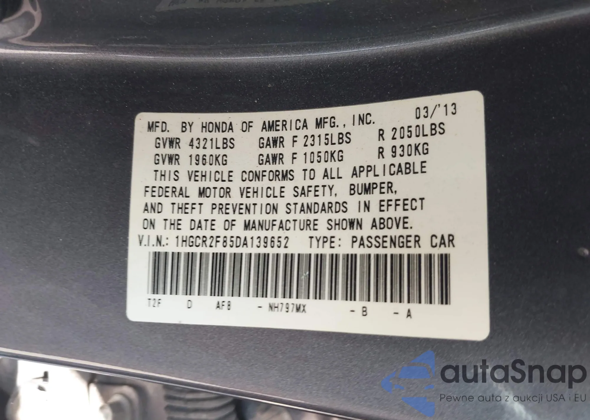 LOT: 42754305 VIN: 1HGCR2F70GA166219