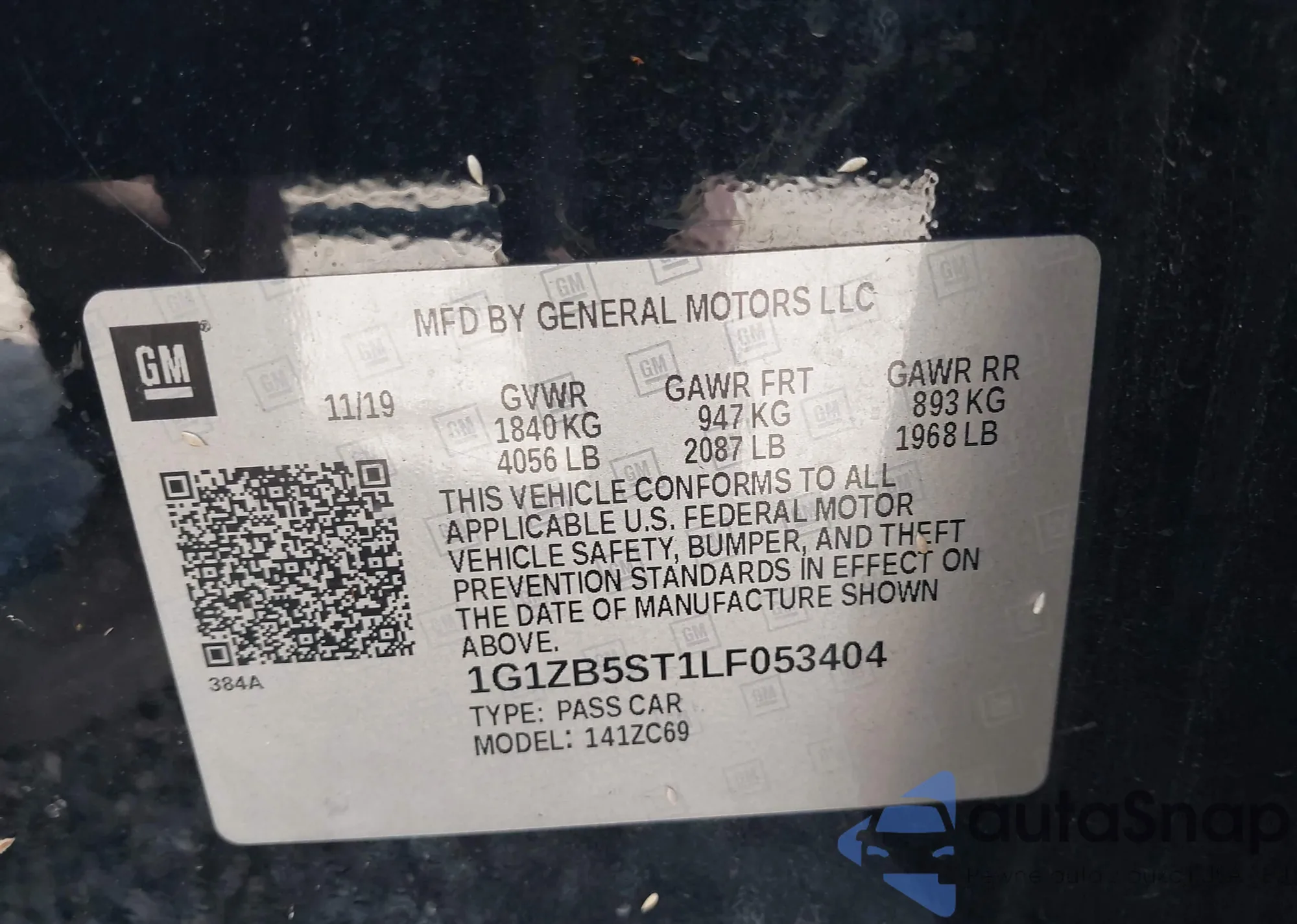 • VIN 1G1ZB5ST1LF053404