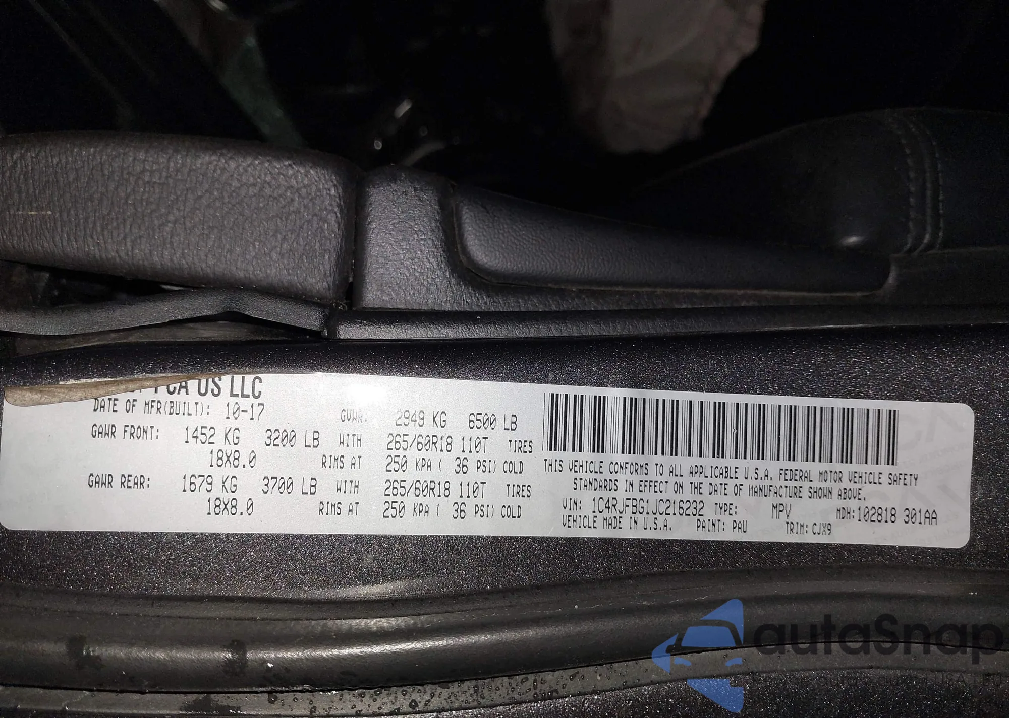LOT: 43388586 VIN: 5NPE34AB6JH635927