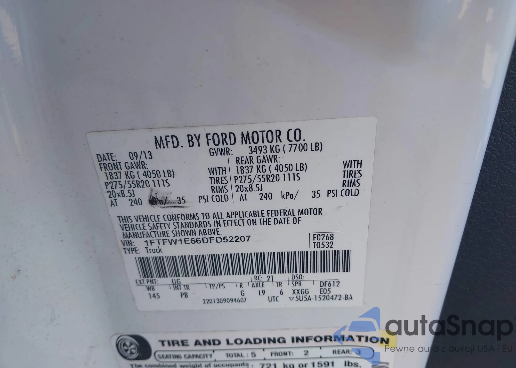 LOT: 43410803 VIN: 1FTFW1E66DFD52207