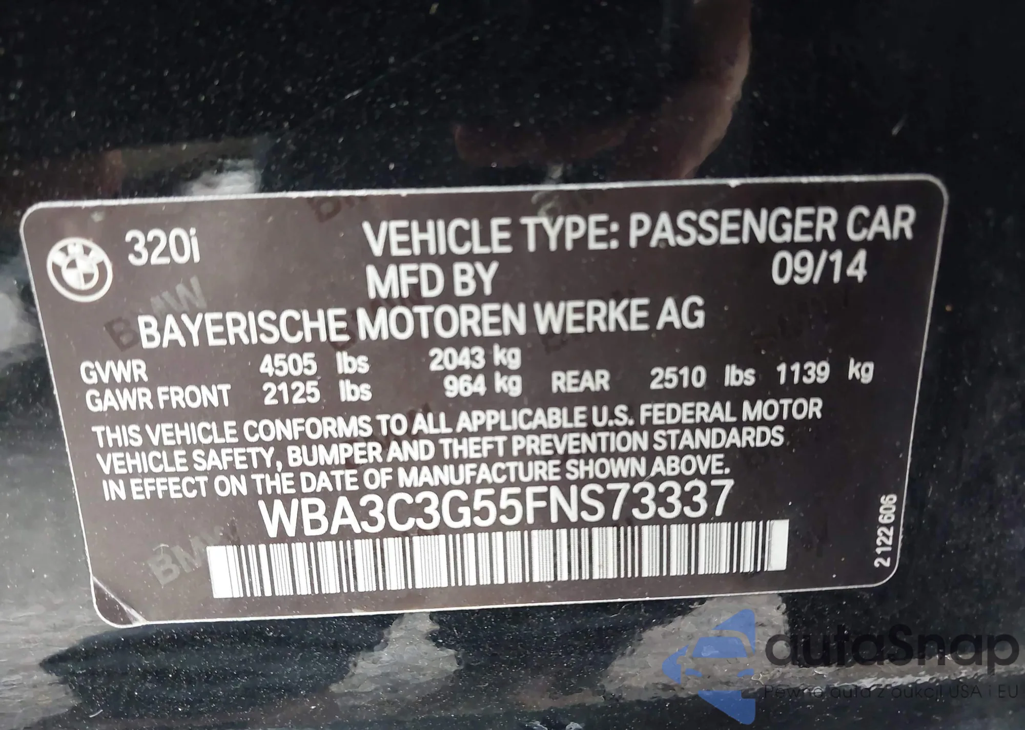 2015 BMW 320I from USA, damaged, VIN WBA3B1G54FNT07713