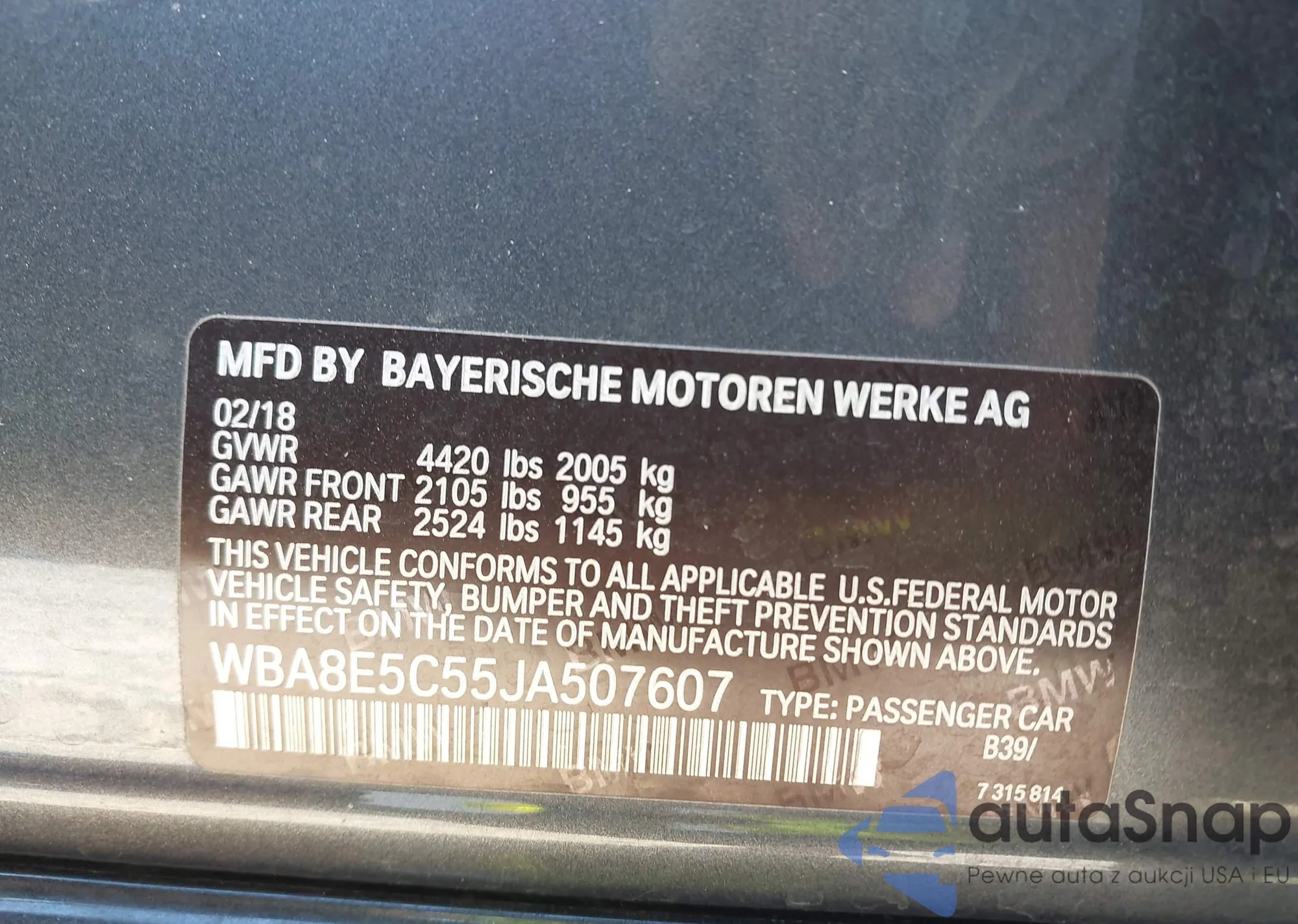 • VIN WBA3C3G55FNS73337