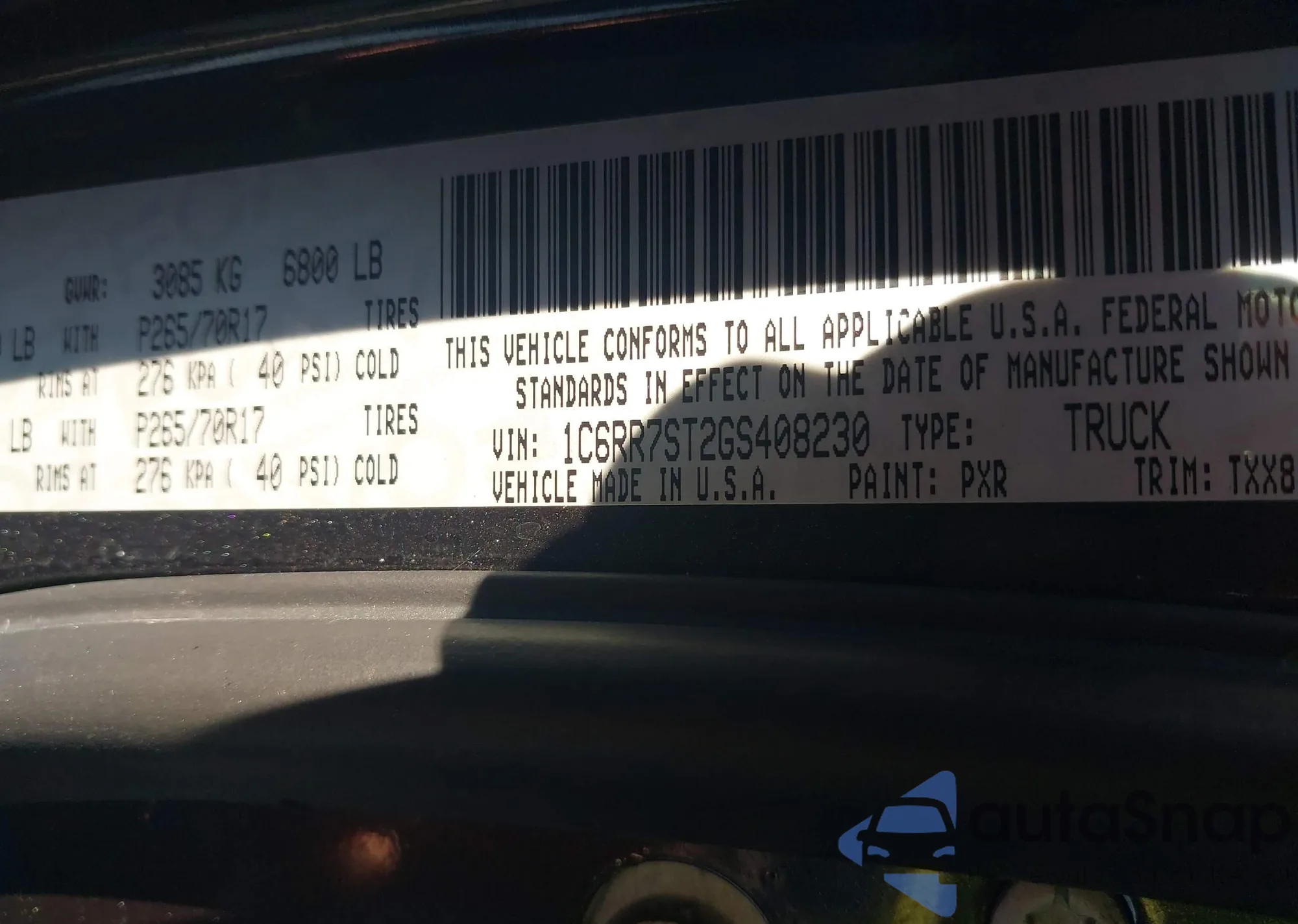 • VIN 1C6RR7ST2GS408230