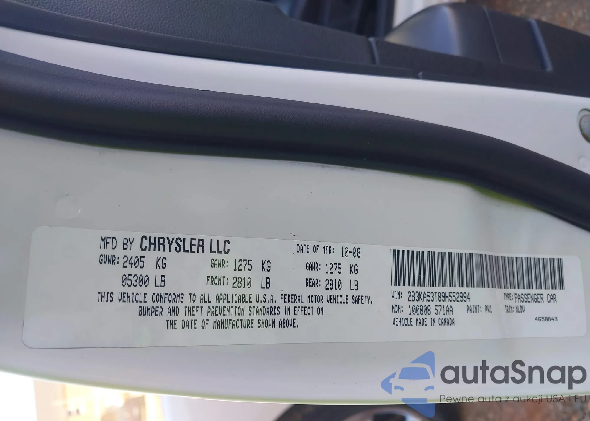 LOT: 43604648 VIN: 2B3KA53T89H552994