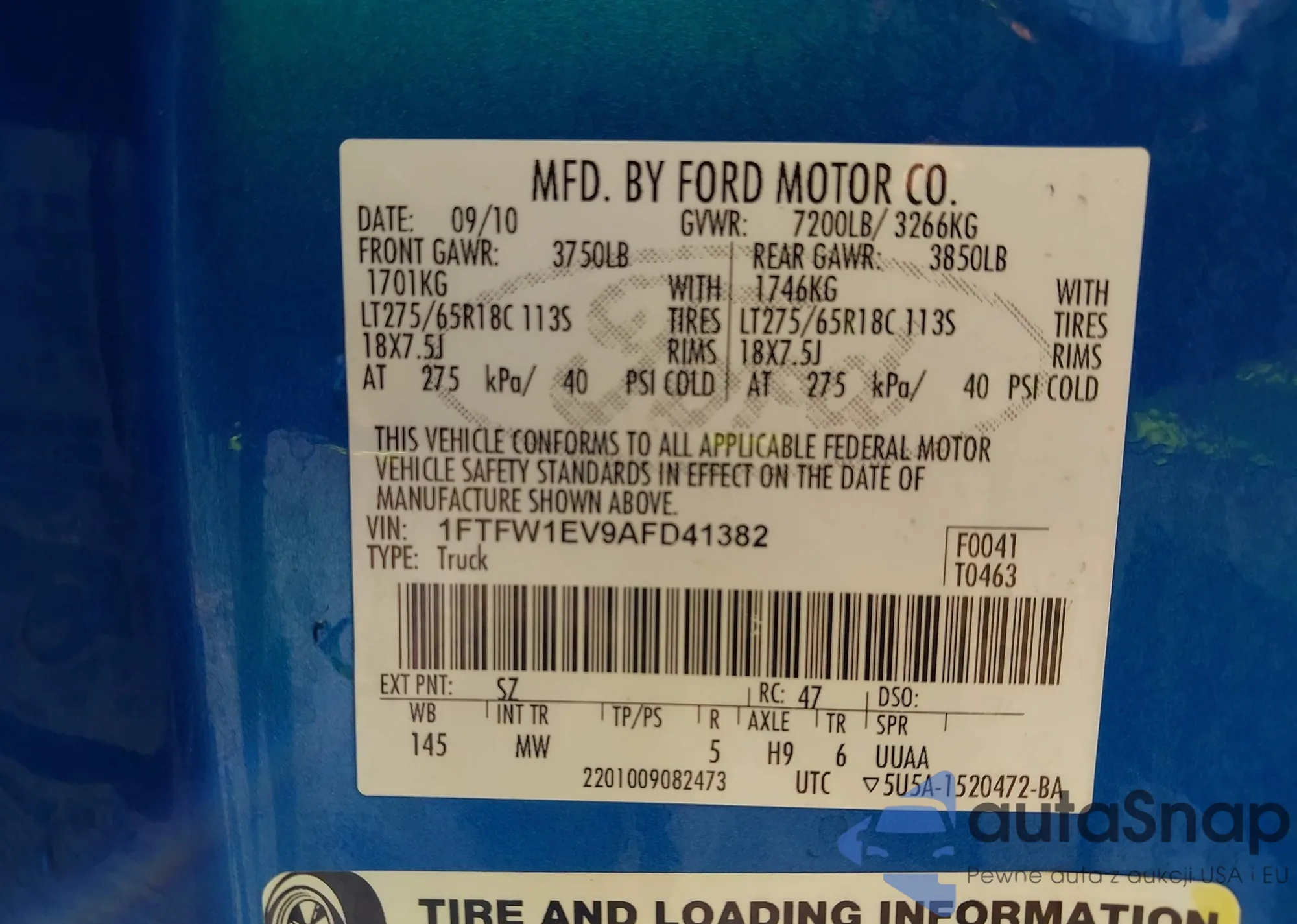 • VIN 1FTFW1EV9AFD41382