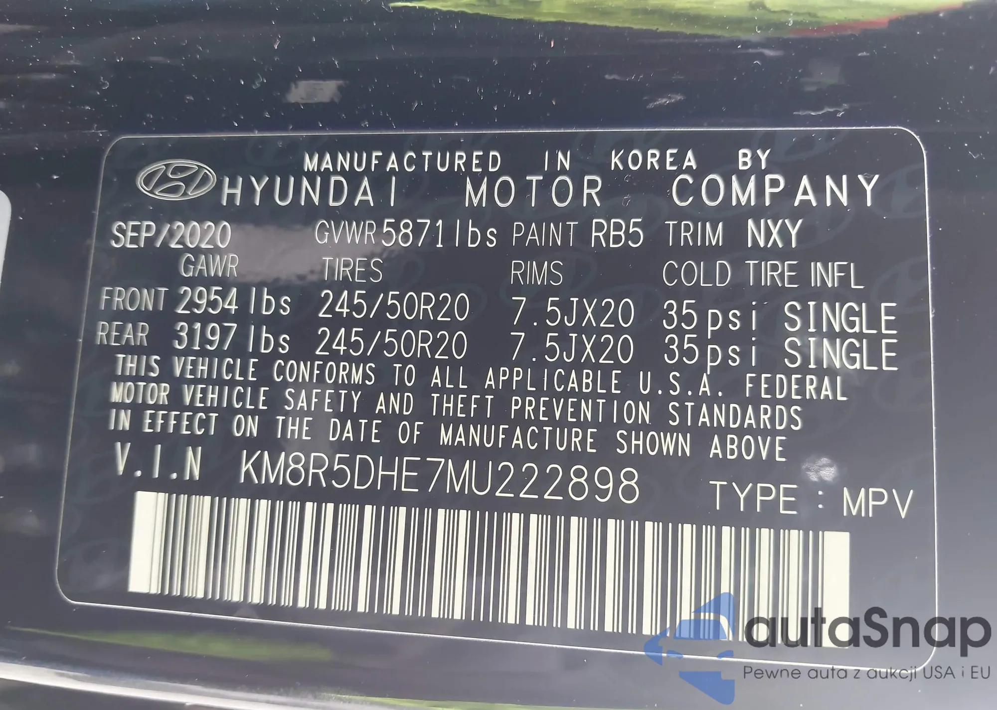 LOT: 43181713 VIN: KM8R5DHE7MU222898
