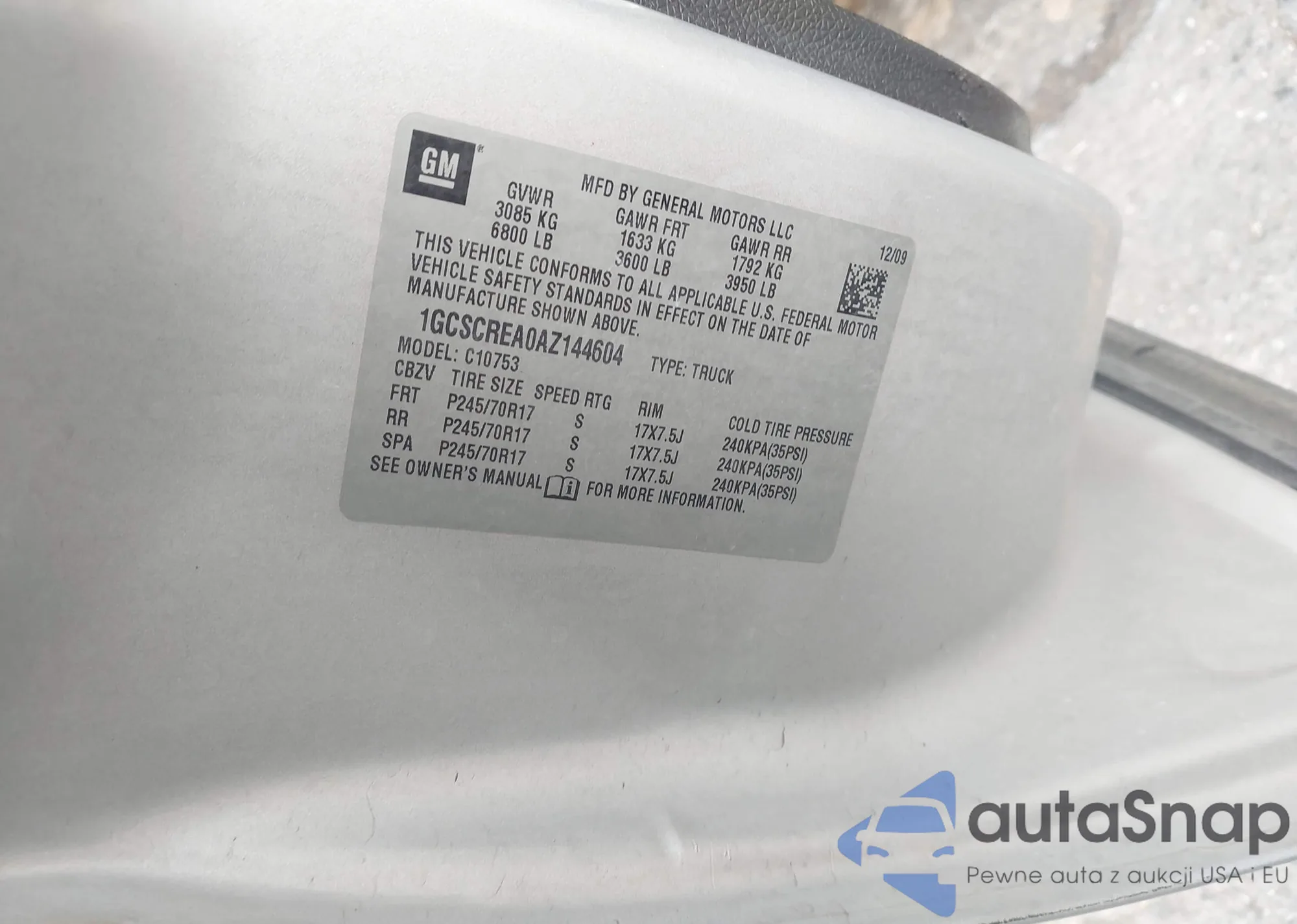 LOT: 43461702 VIN: 1GCSCREA0AZ144604