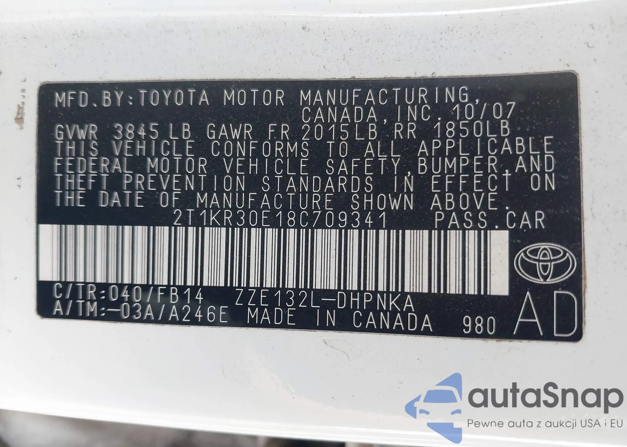• VIN 2T1KR30E18C709341