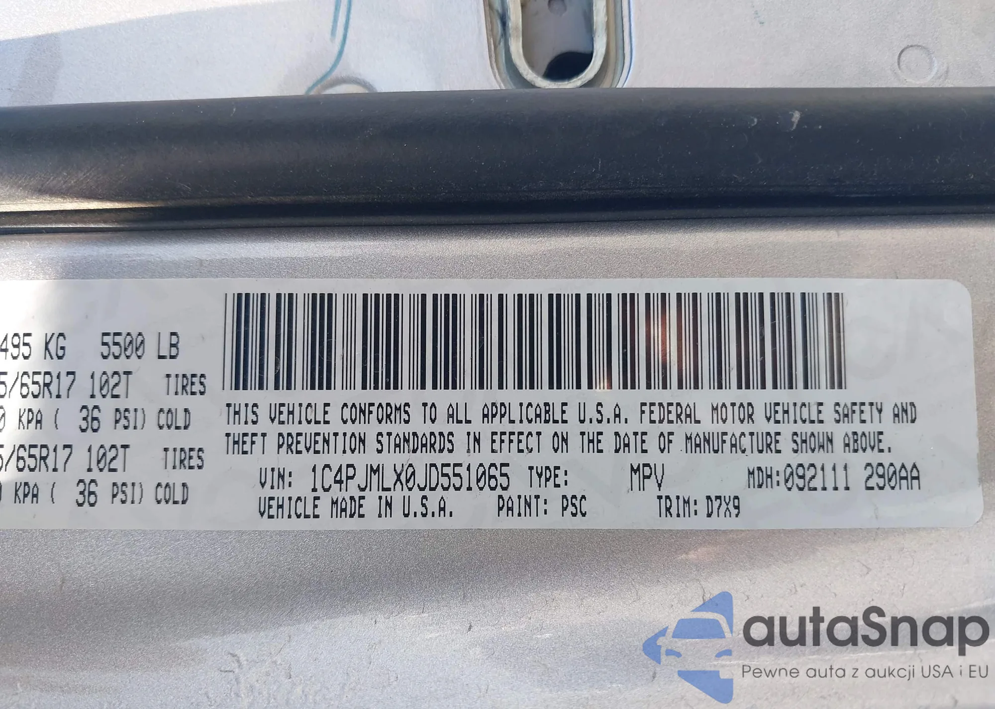 • VIN 1C4PJMLX0JD551065