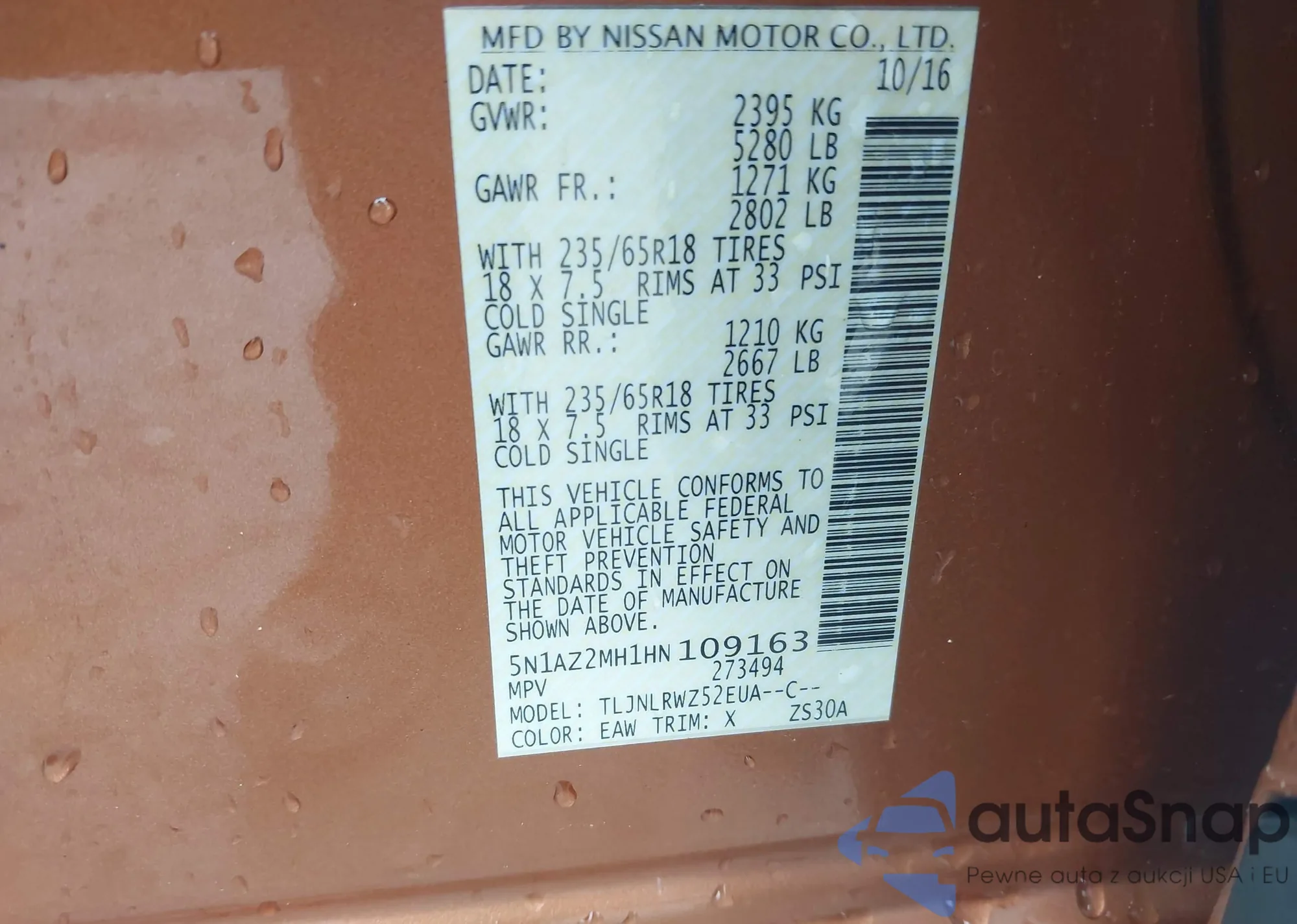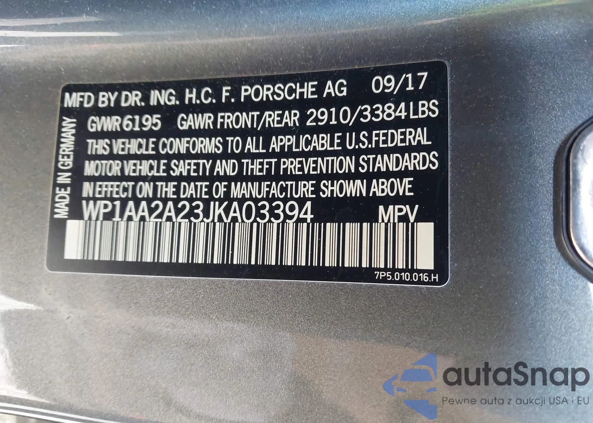 LOT: 43597546 VIN: WP1AA2A23JKA03394