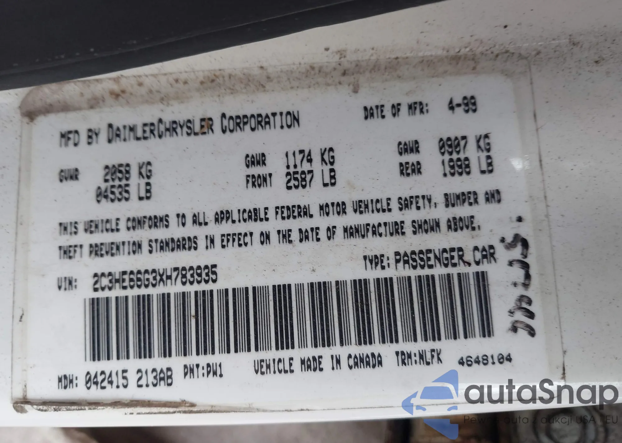 • VIN 2C3HE66G3XH783935
