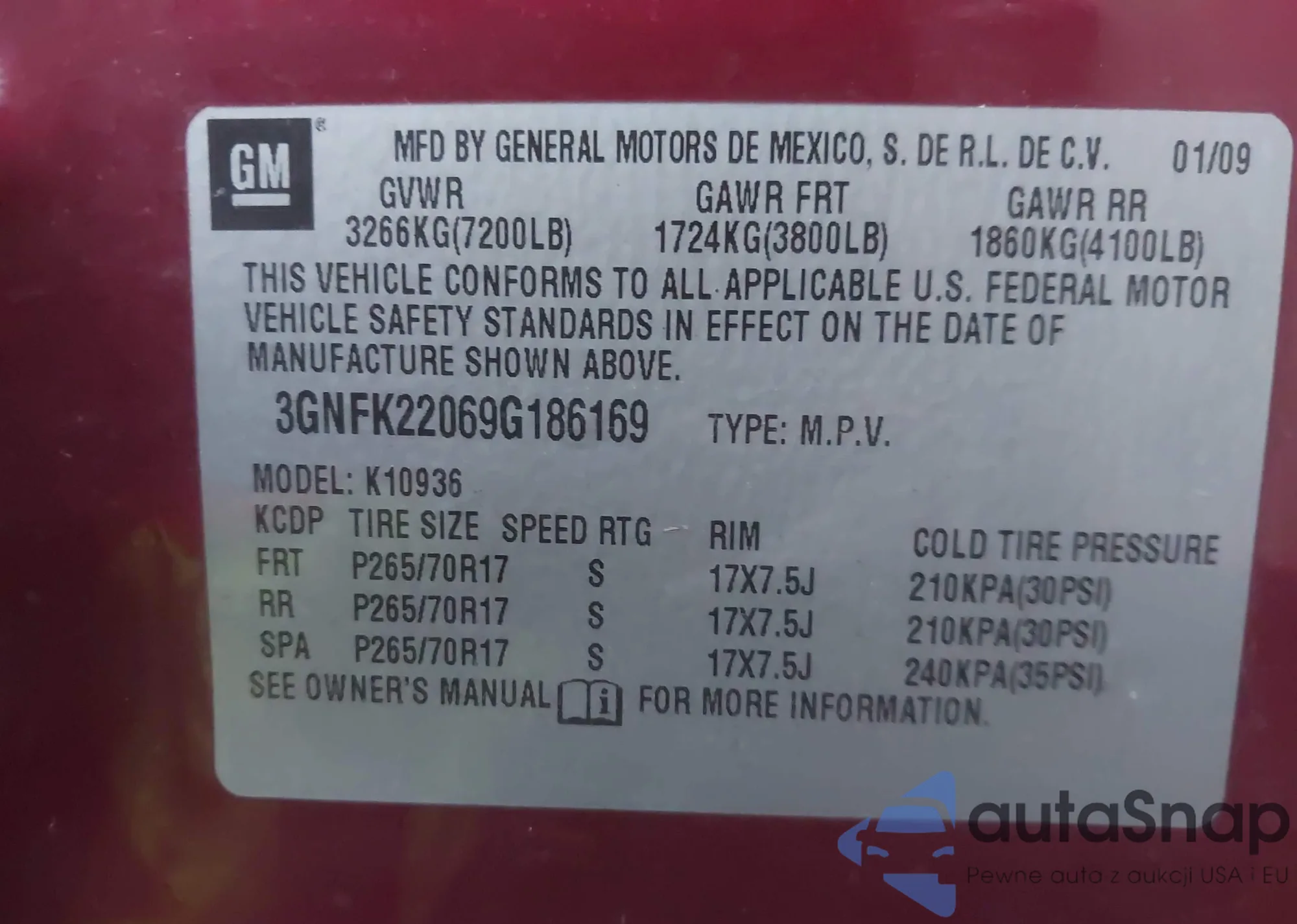 LOT: 43769308 VIN: 3GNFK22069G186169