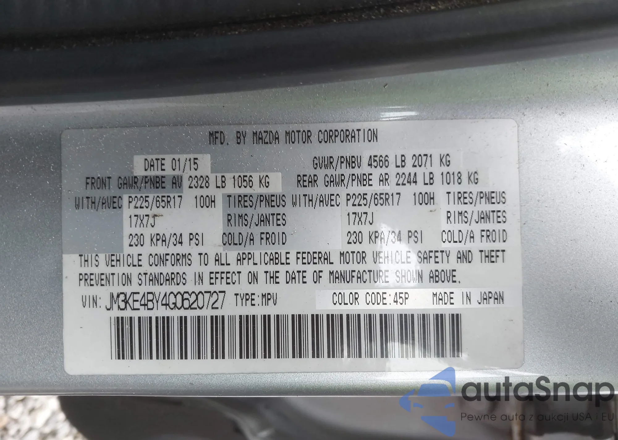 LOT: 43719165 VIN: 4S3BH635717302048
