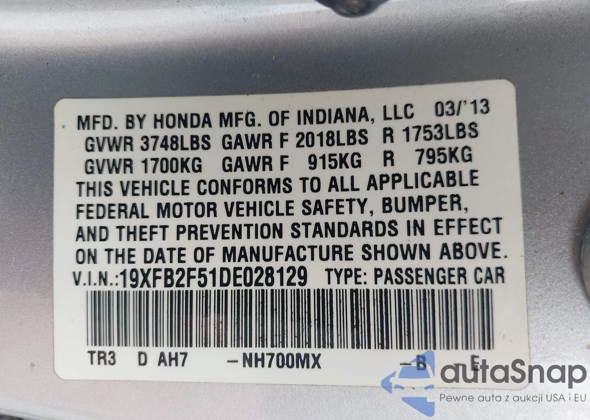 • VIN 2HKRW1H58JH522505
