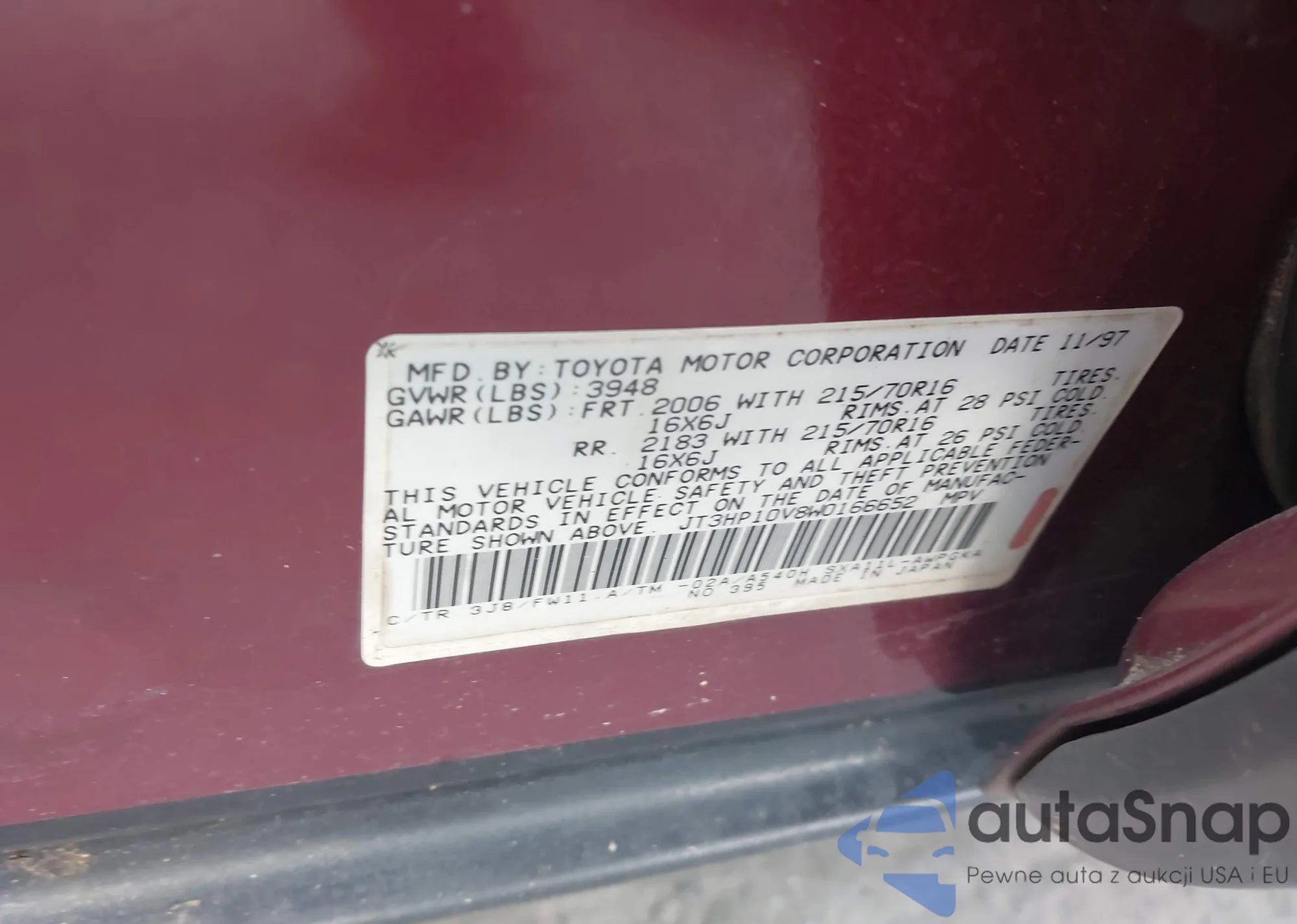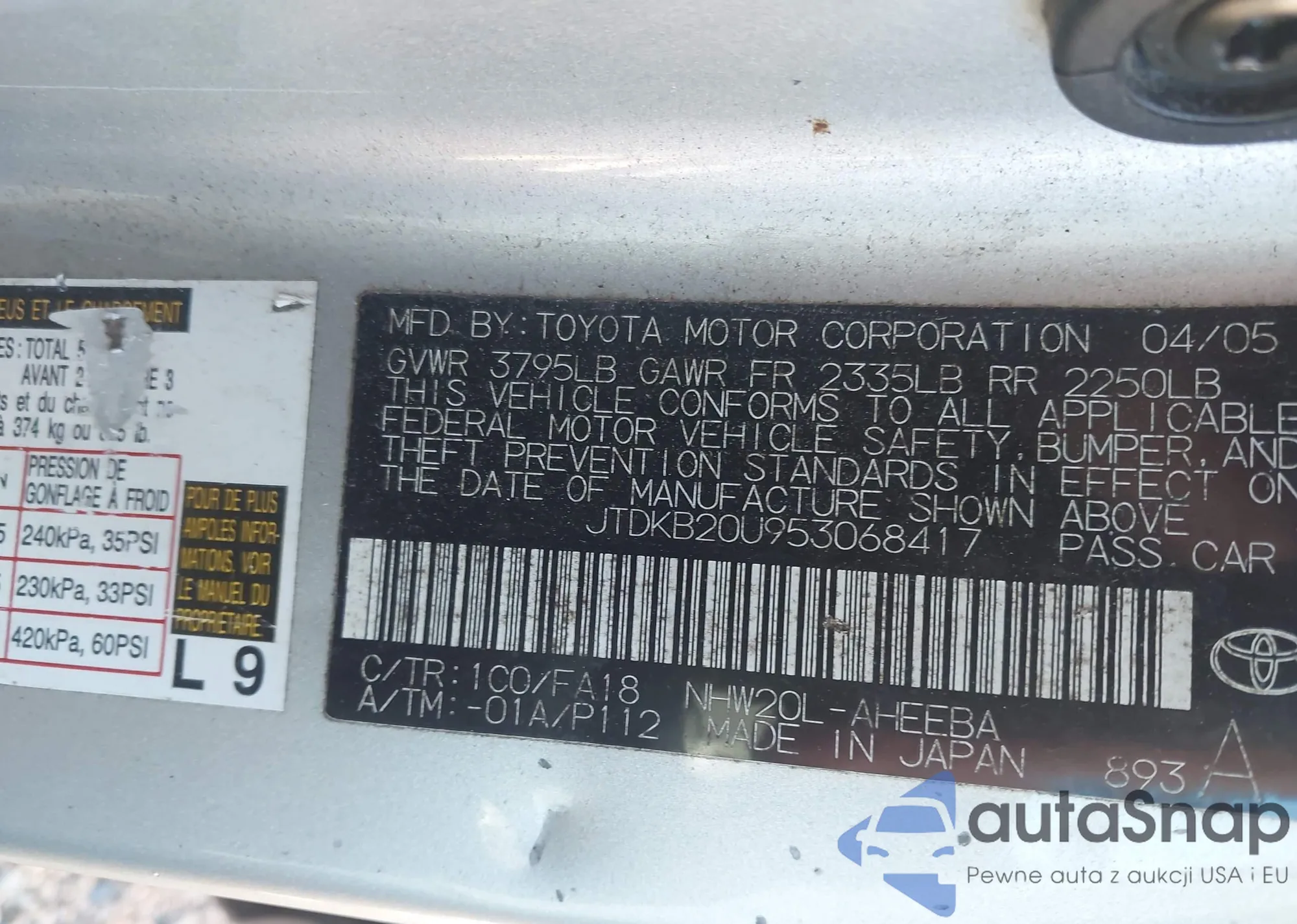 LOT: 43686658 VIN: JTDKB20U953068417