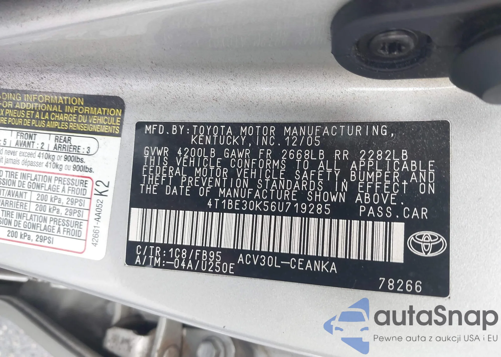 • VIN 4T1BE30K56U719285