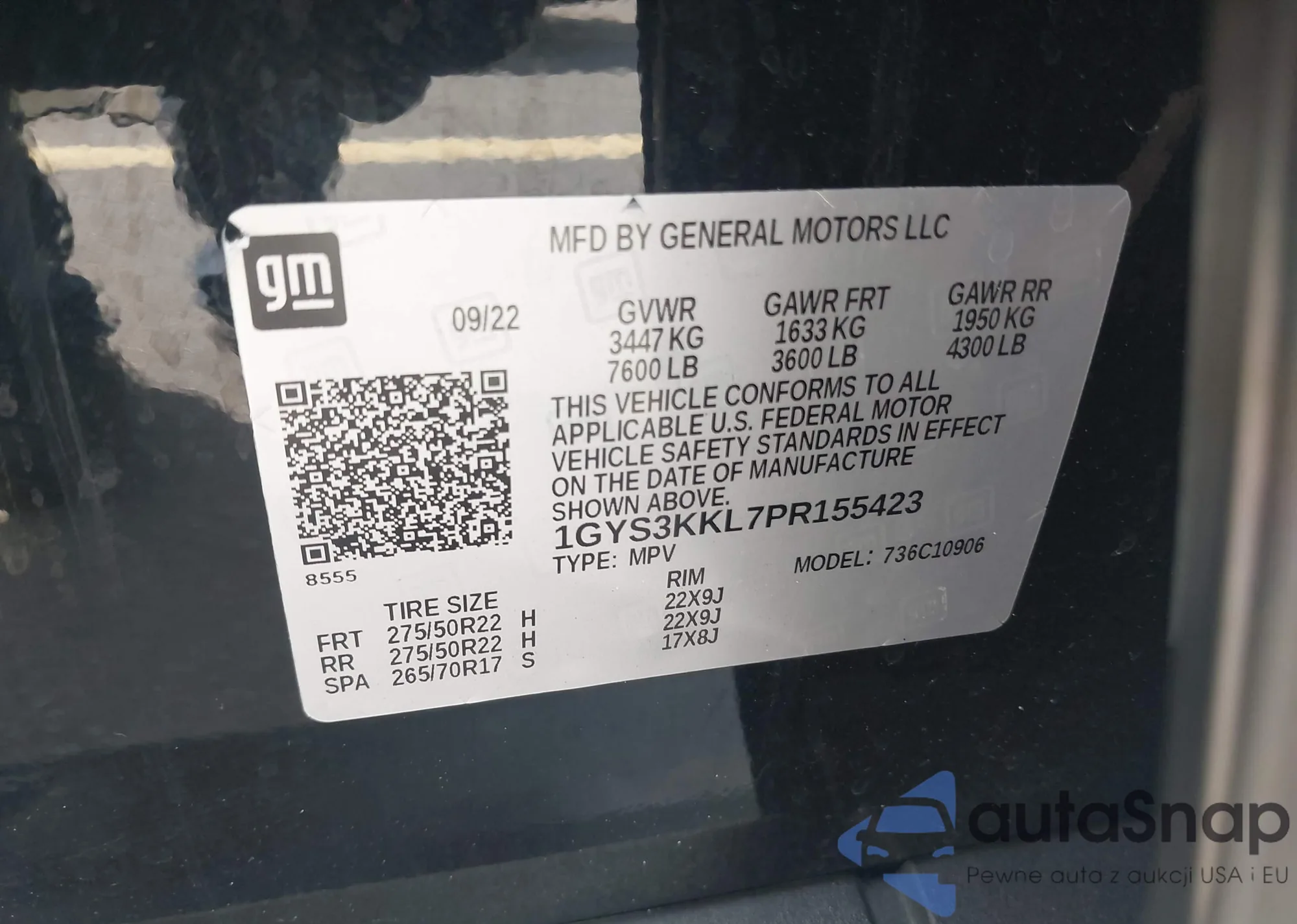 • VIN 1GYS3KKL7PR155423