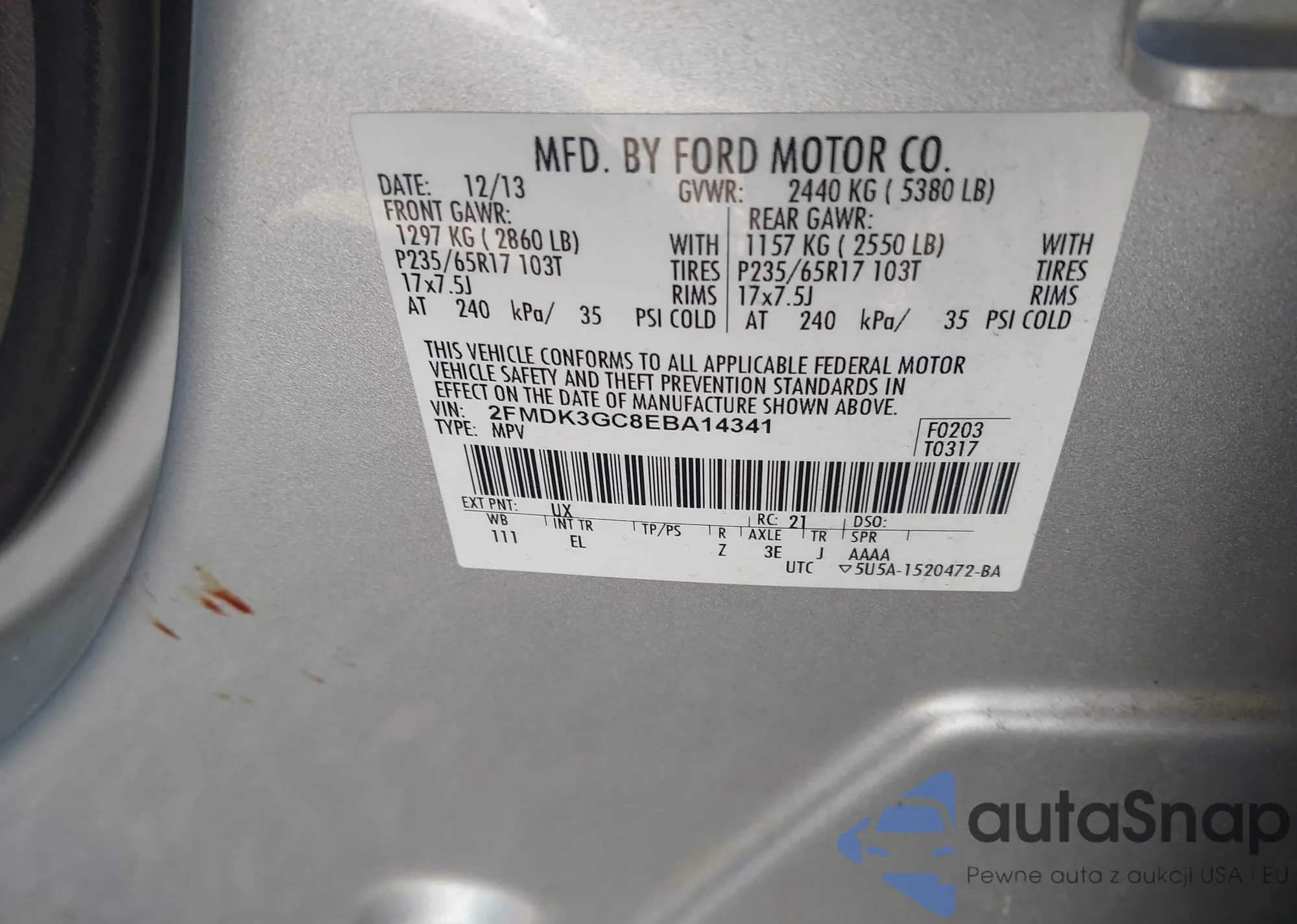 LOT: 43458696 VIN: 2FMDK4AK2DBC65456