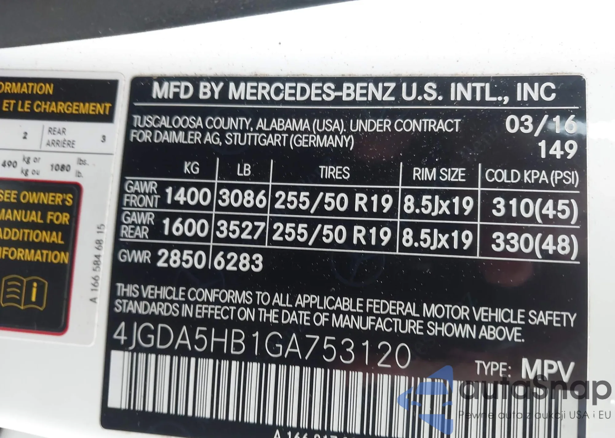 • VIN 4JGDA5HB1GA753120