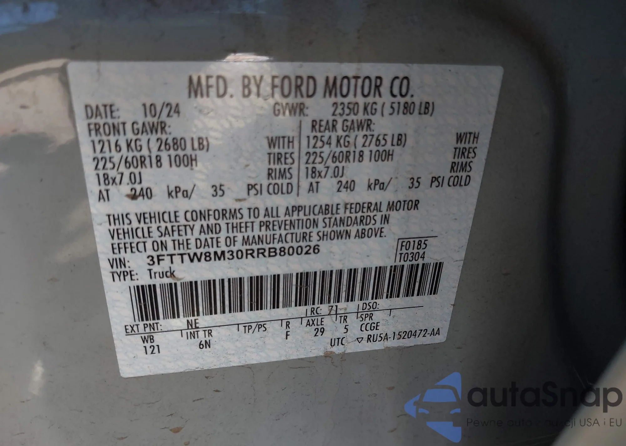 • VIN 3FTTW8M30RRB80026
