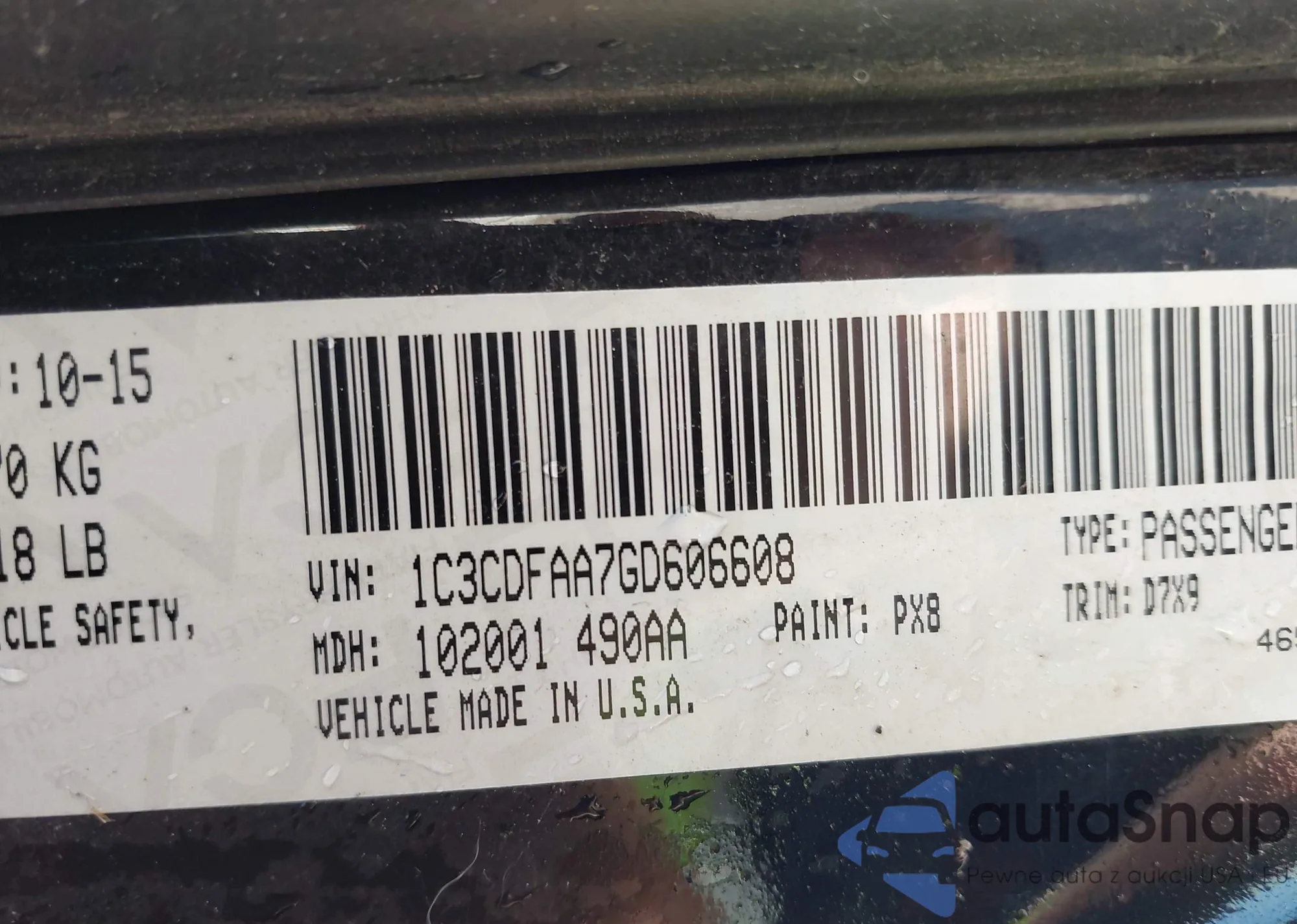 • VIN 1C3CDFAA7GD606608