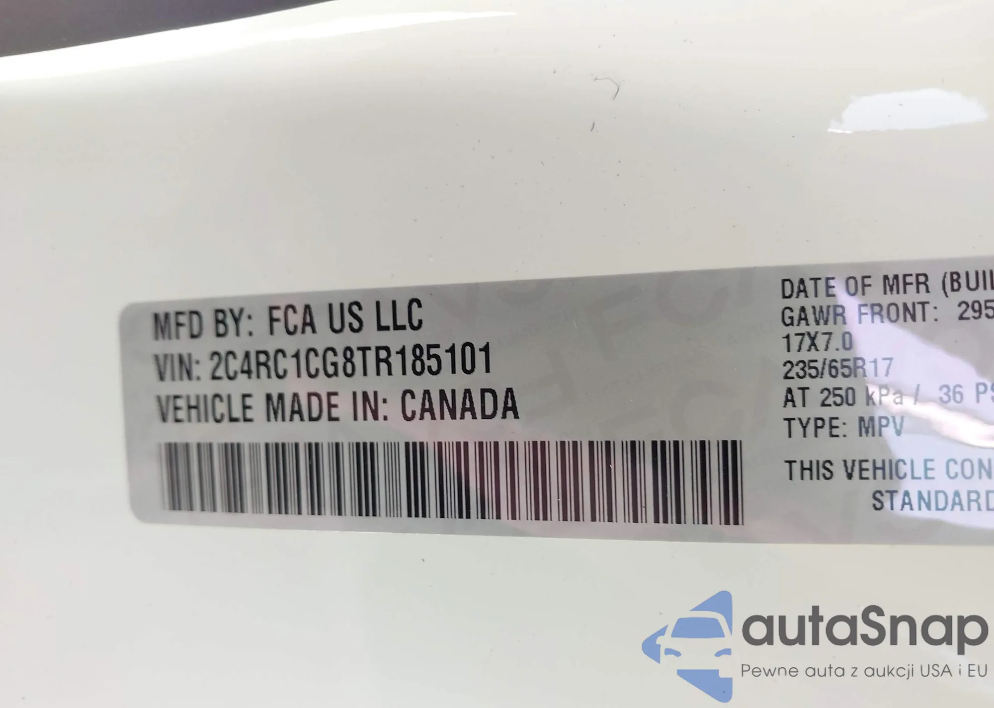 • VIN 2C4RC1CG8TR185101