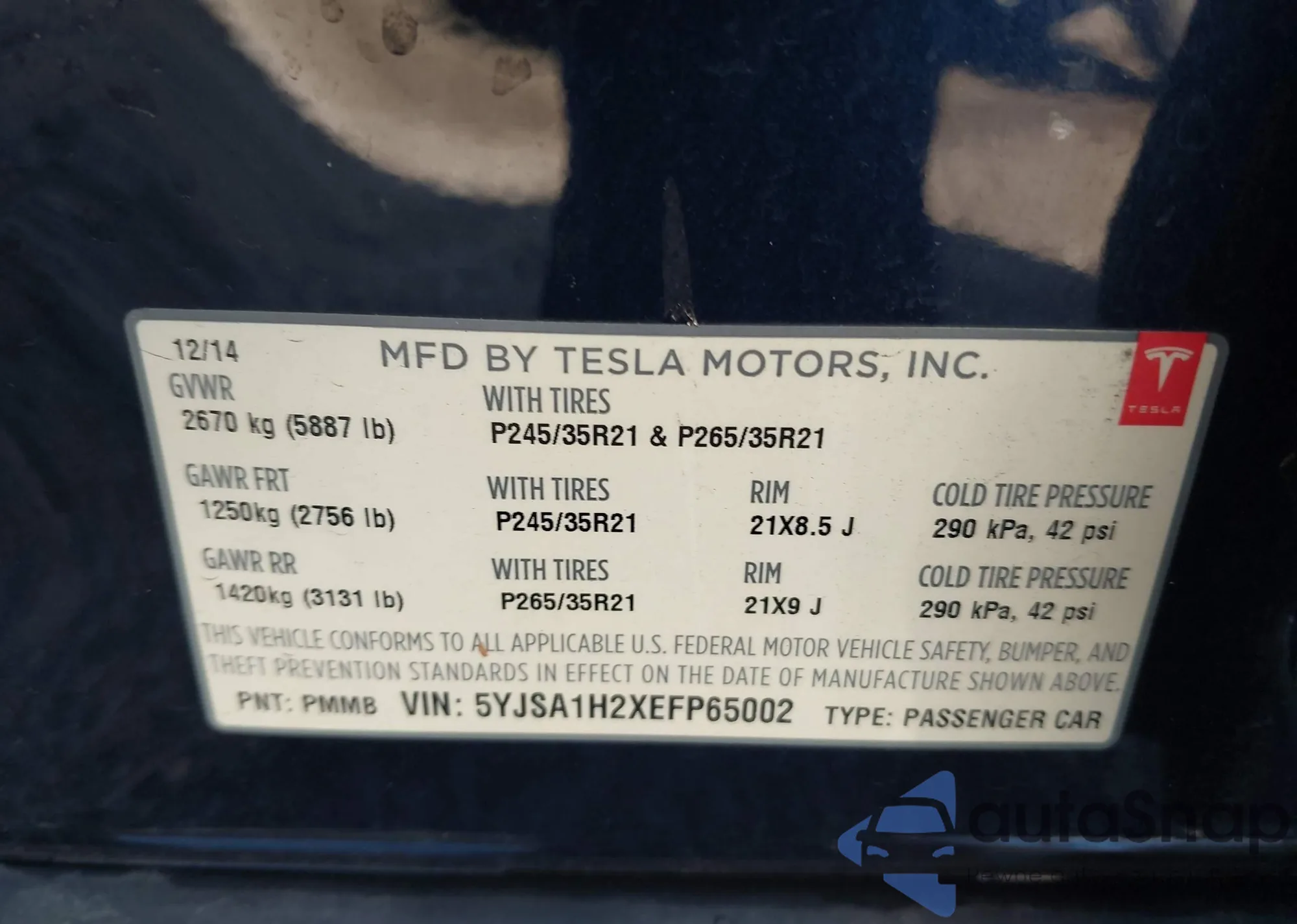 • VIN 5YJSA1H2XEFP65002