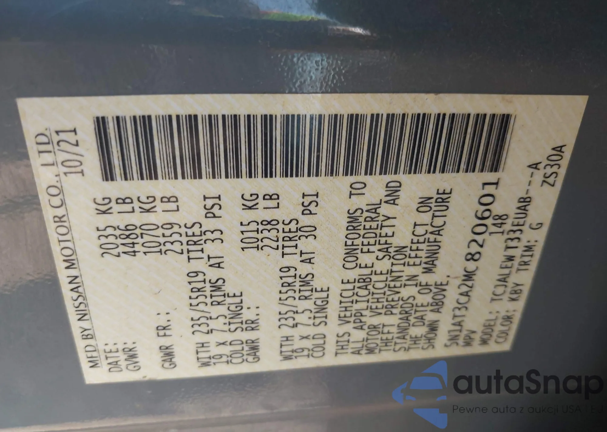 LOT: 43190042 VIN: 5UXZV4C57D0B02085