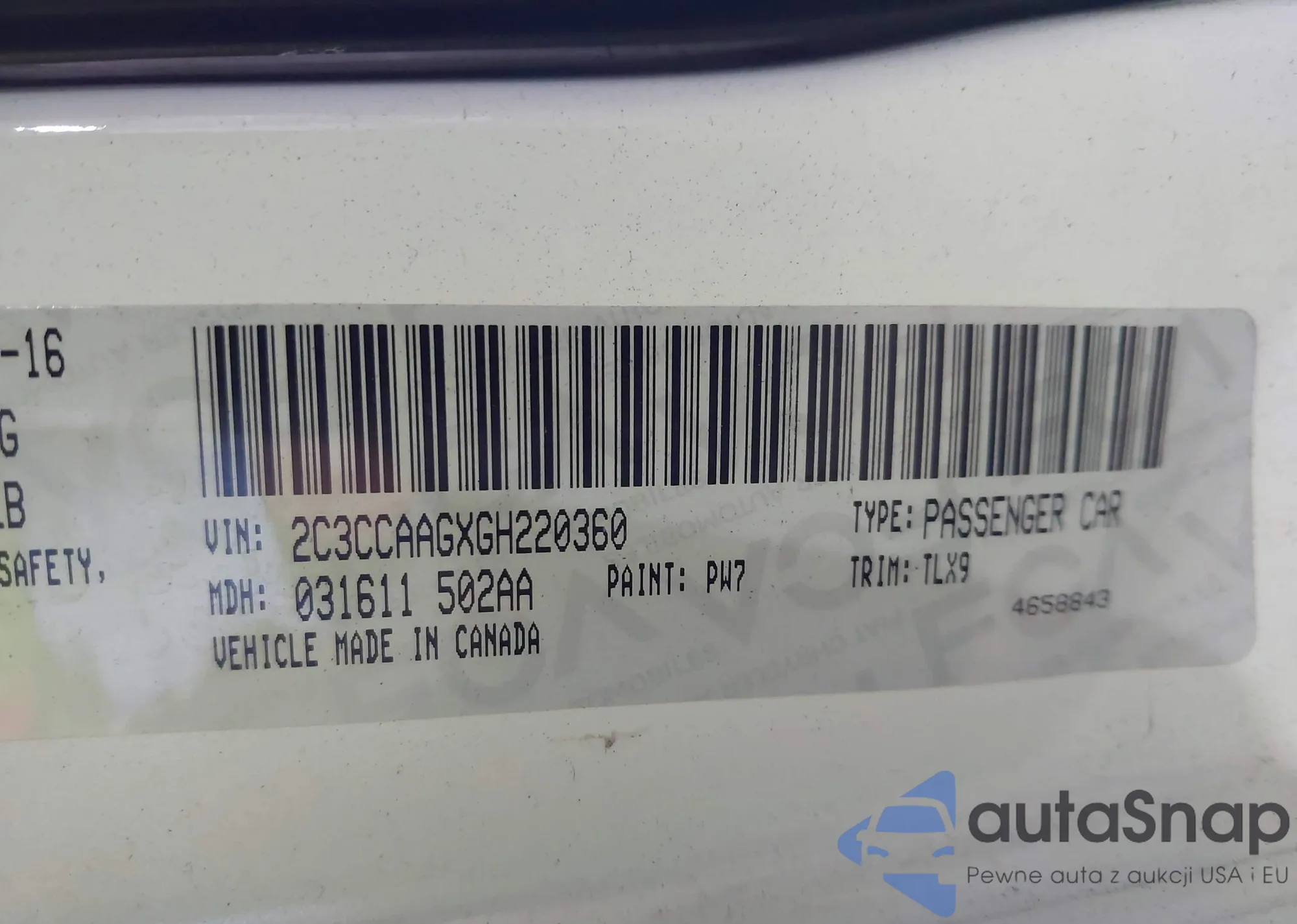 • VIN 2C3CCAAGXGH220360