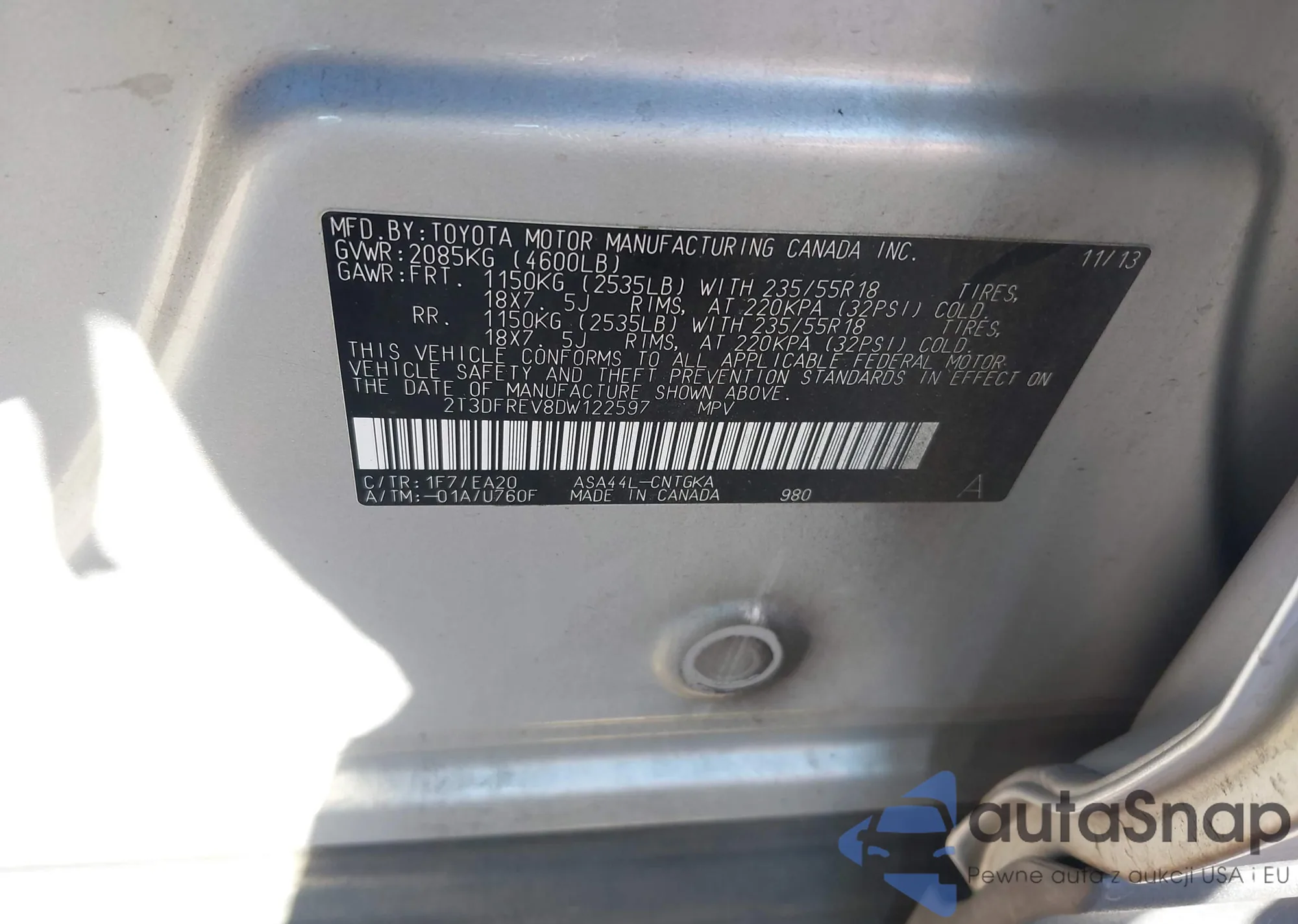 • VIN 2T3DFREV8DW122597