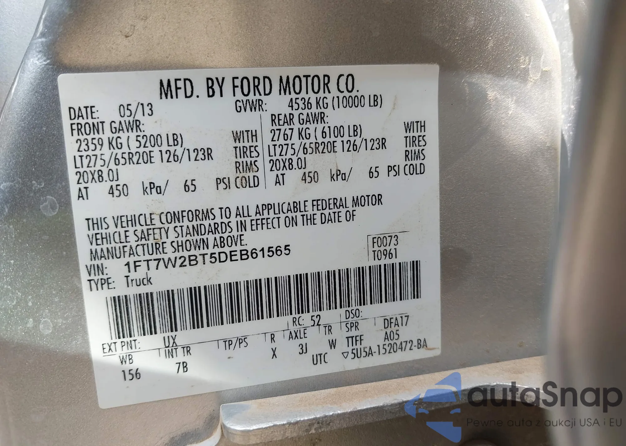 • VIN 1FT7W2BT5DEB61565